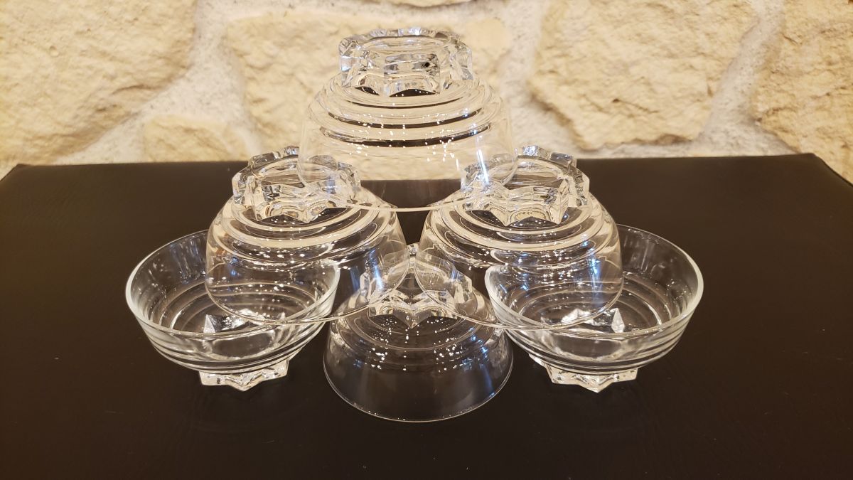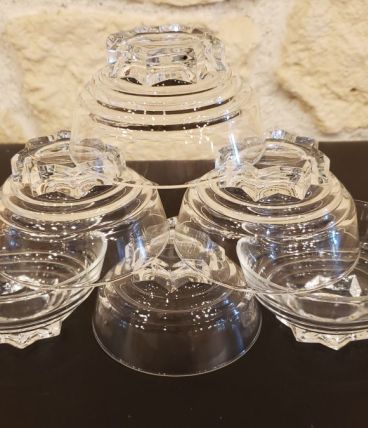Ensemble de coupelles en verre transparent datant des années 40/50.