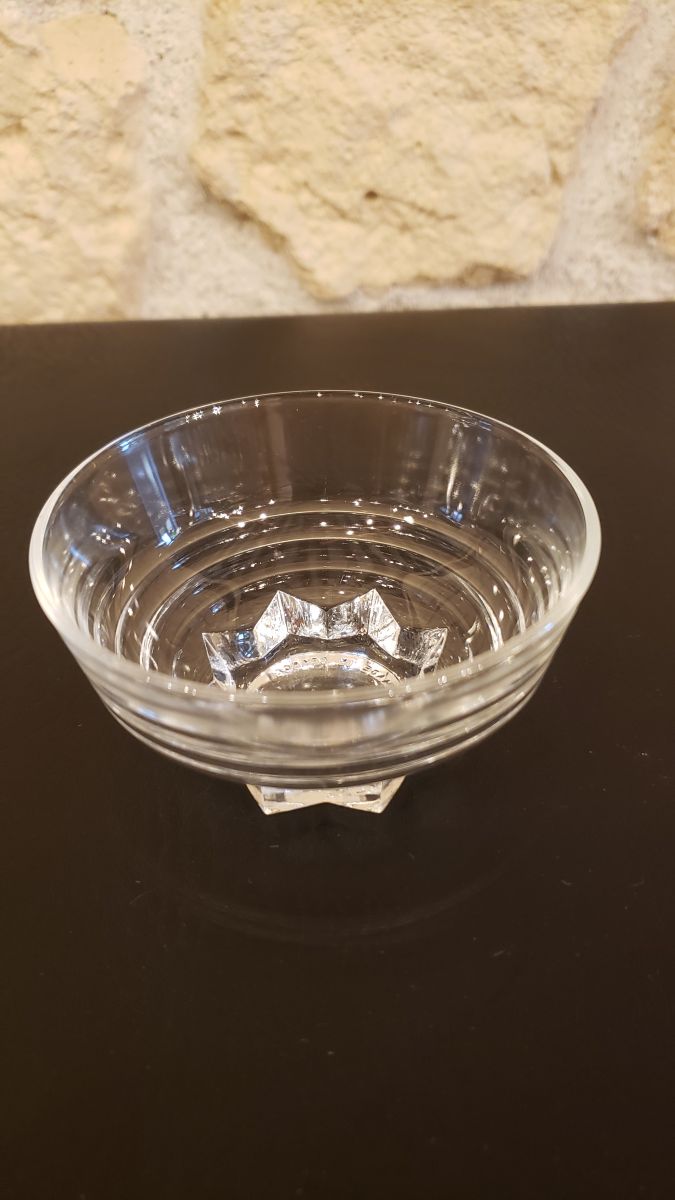 En verre pressé, ces coupes avec un joli pied en étoile, sont estampillées Made in France sur le dessous.