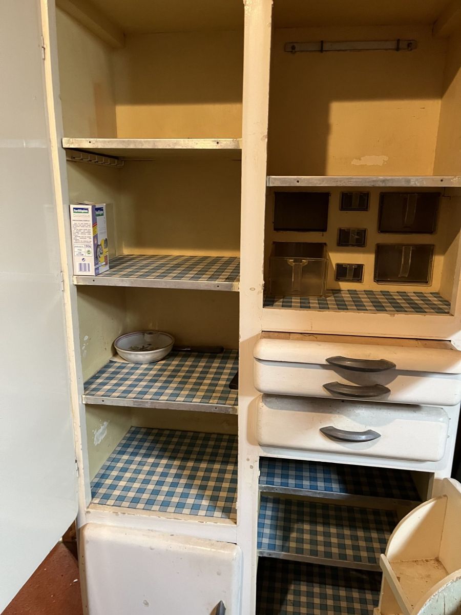 4 portes, 2 tiroirs et tiroirs intérieurs pour mettre des denrées + huche à pains