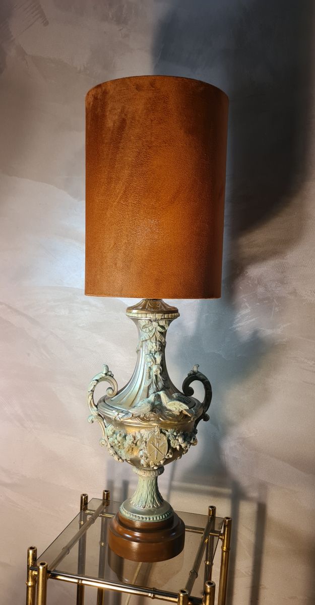 lampe vintage style rococo ,regency, regule steel patinée abat jour en velour 66x20