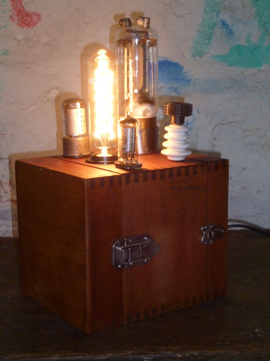 J'ai installé sur le dessus d'ancienne lampe de T S F , isolateur en porcelaine . ( simple décoration ) .