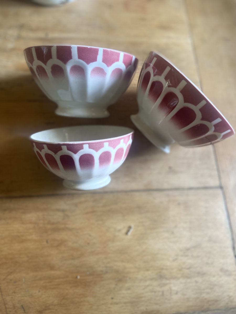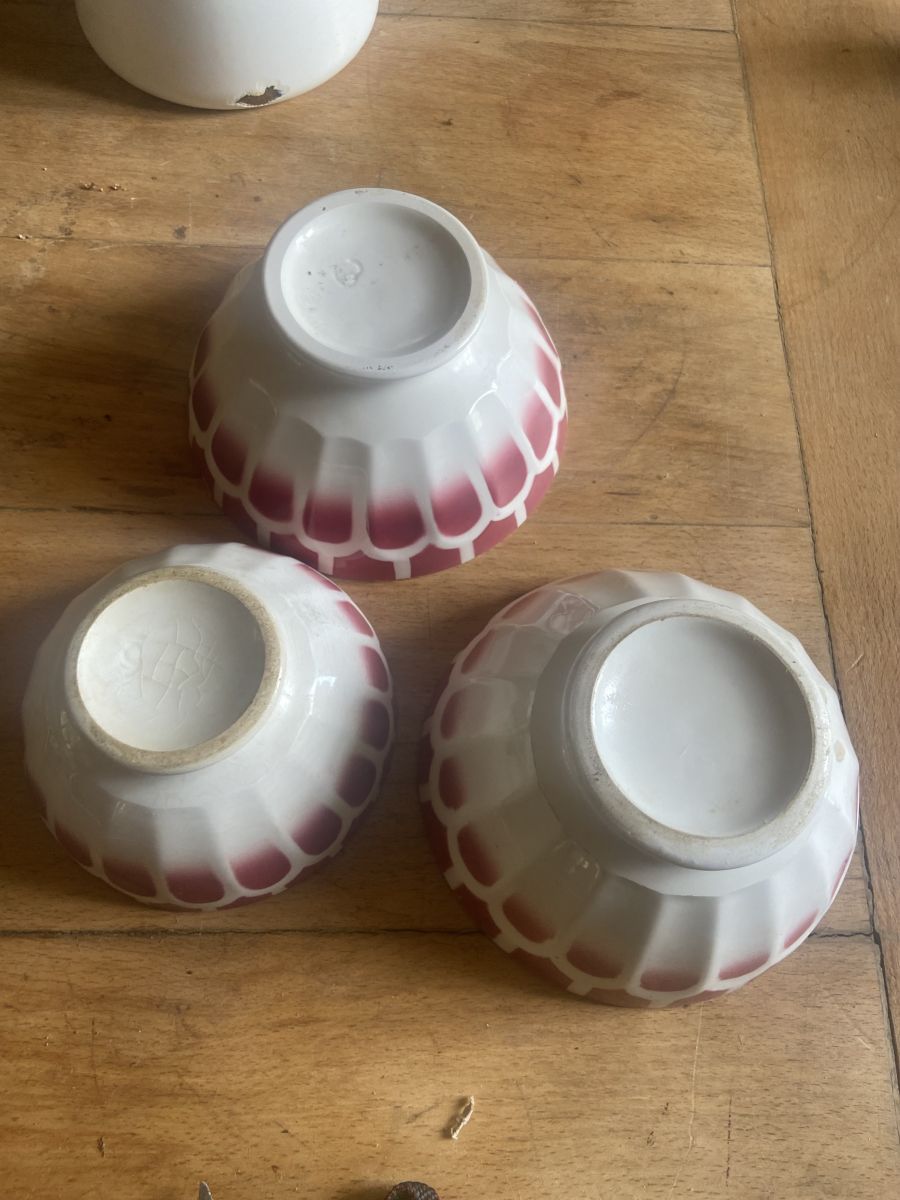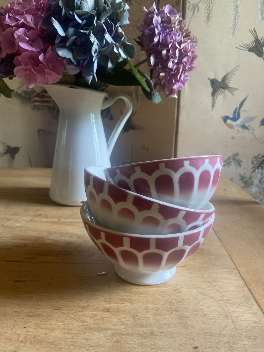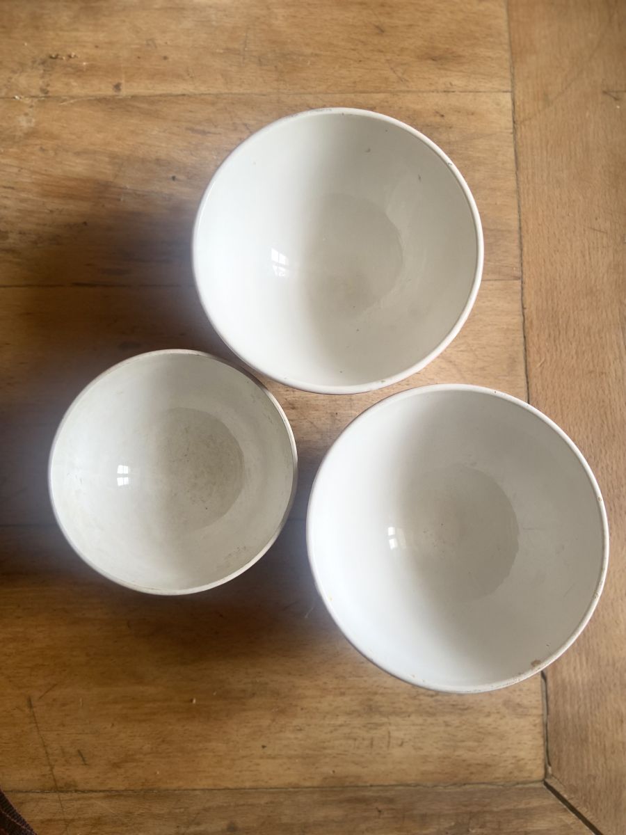 Trio de bols anciens modèle à facettes en bel état d’origine, ils sont légèrement dépareillés de dimensions.