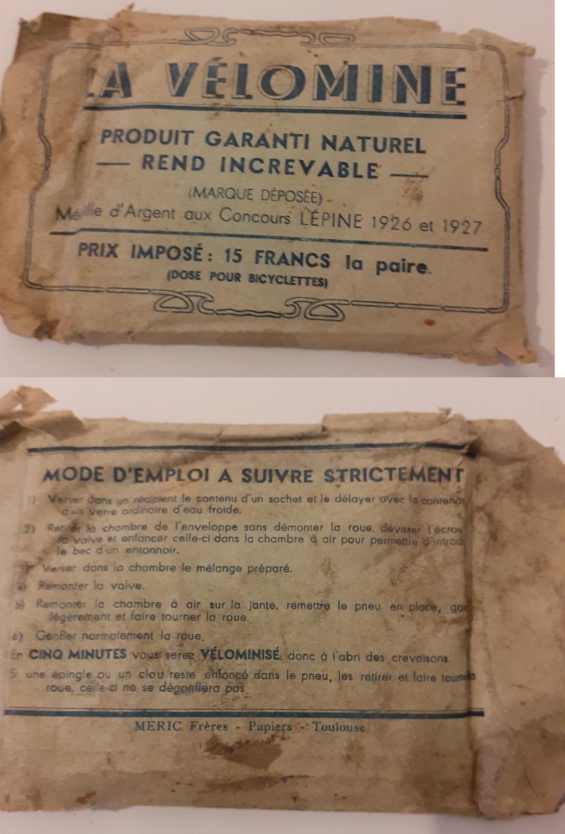 Sachet de Vélomine de 1926 anti crevaison de l'époque bonjou