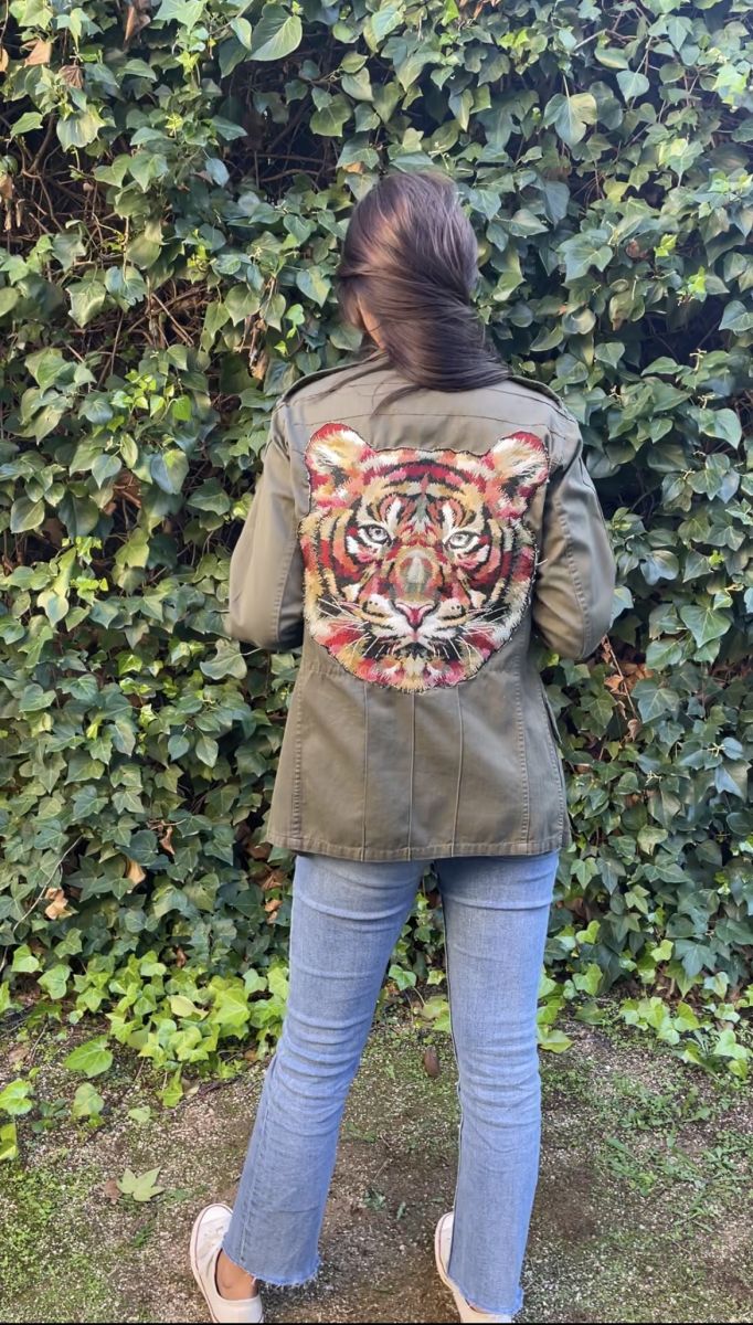 Veste militaire, avec tête de tigre dans le dos.
