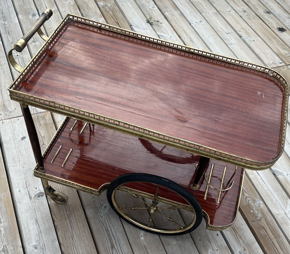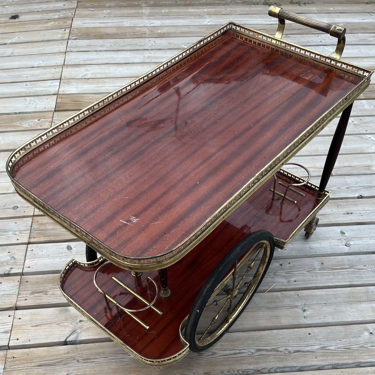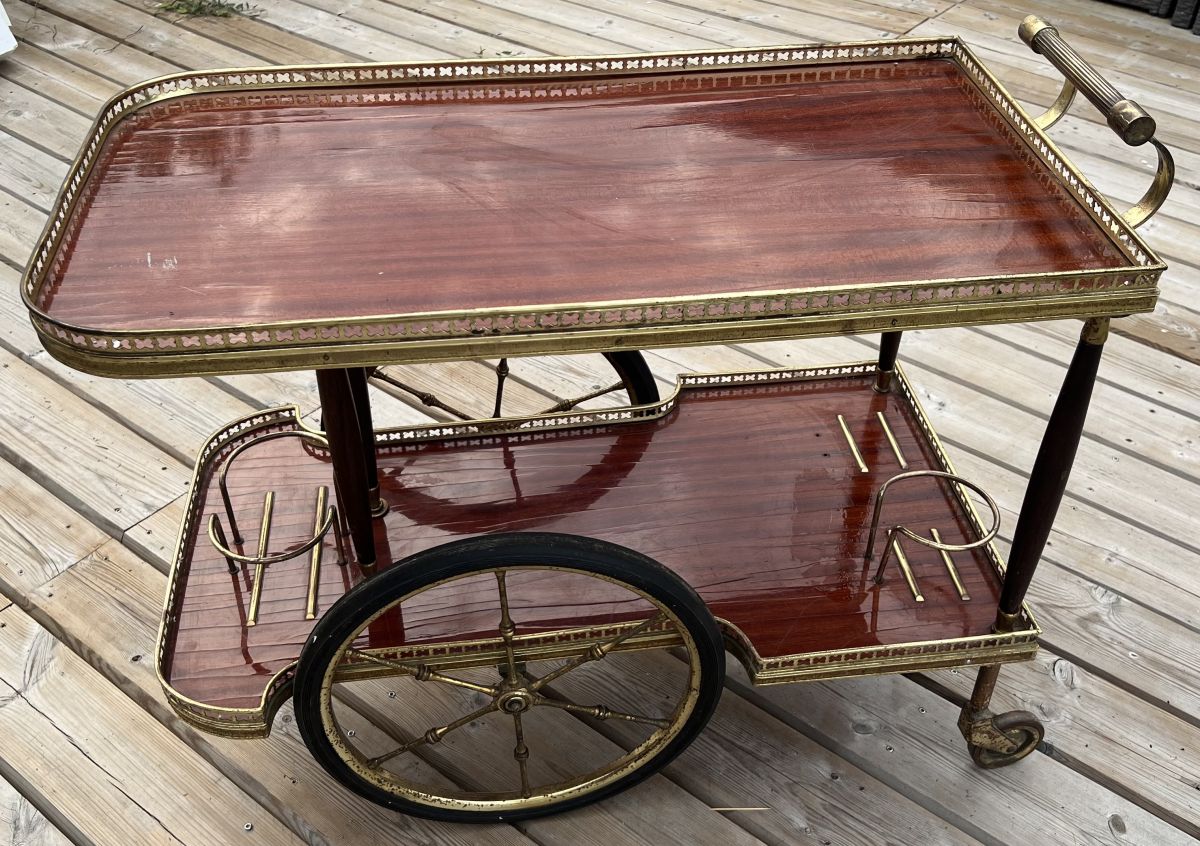 Table bar roulante de service en acajou et laiton - 1970
