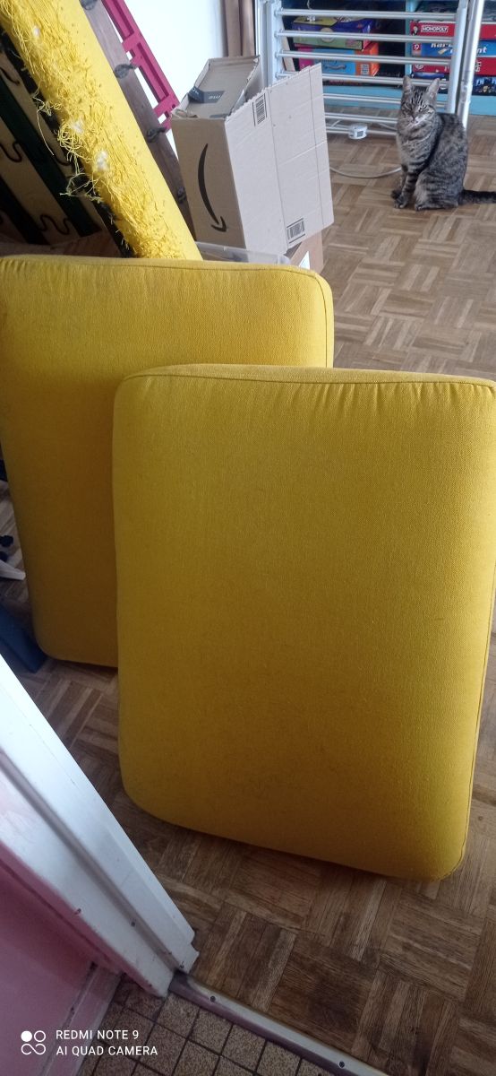 2 beaux coussins jaunes déhoussables