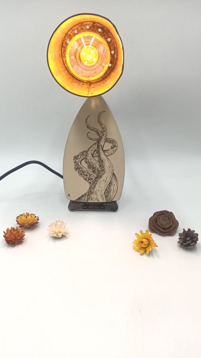 L'ampoule led à culot E14 consomme 4w. Elle est montée sur un kit électrique pour lampe de chevet acheté dans le commerce,pour une sécurité fiable.