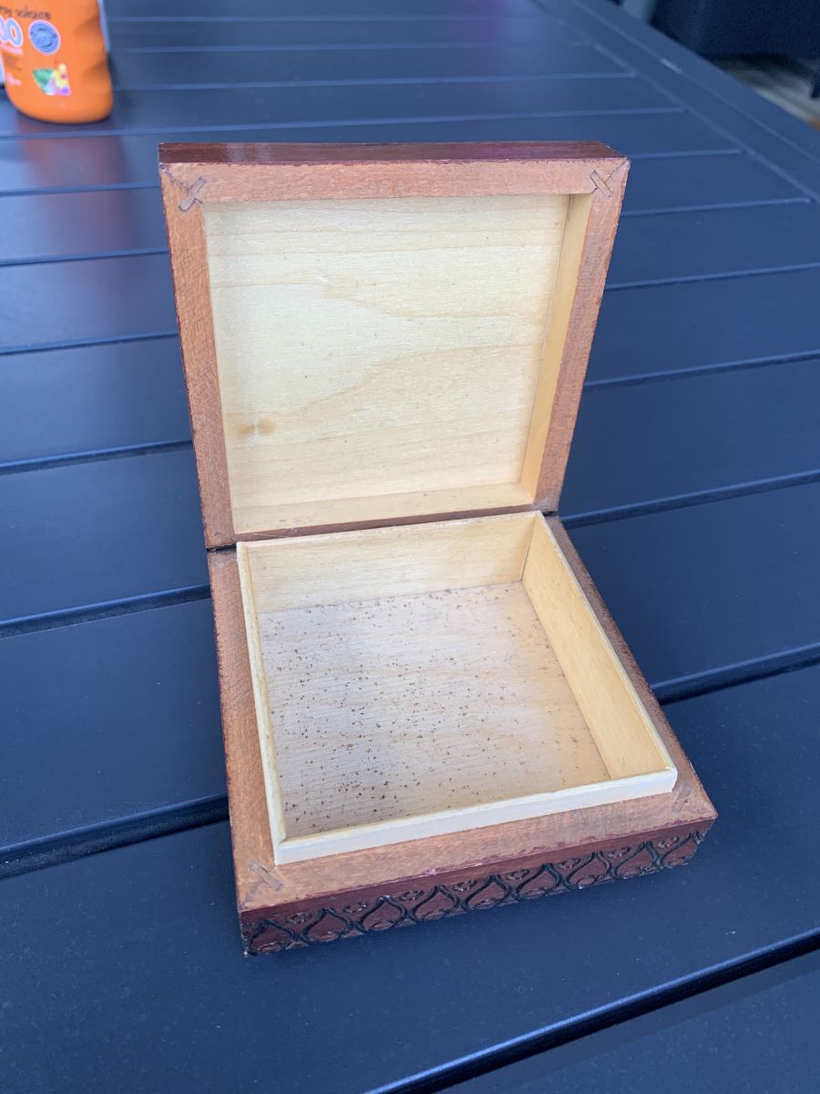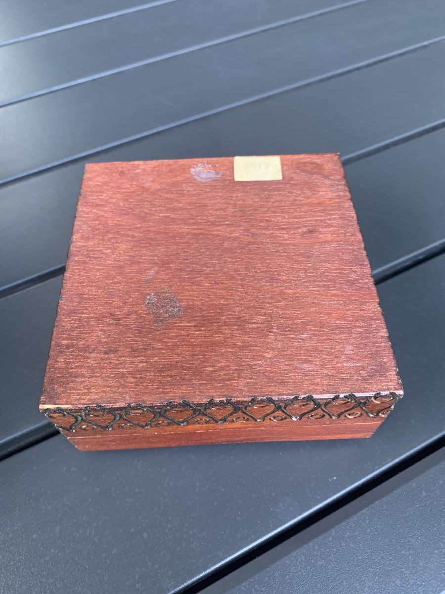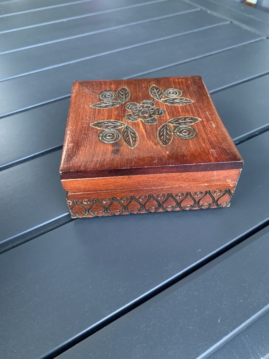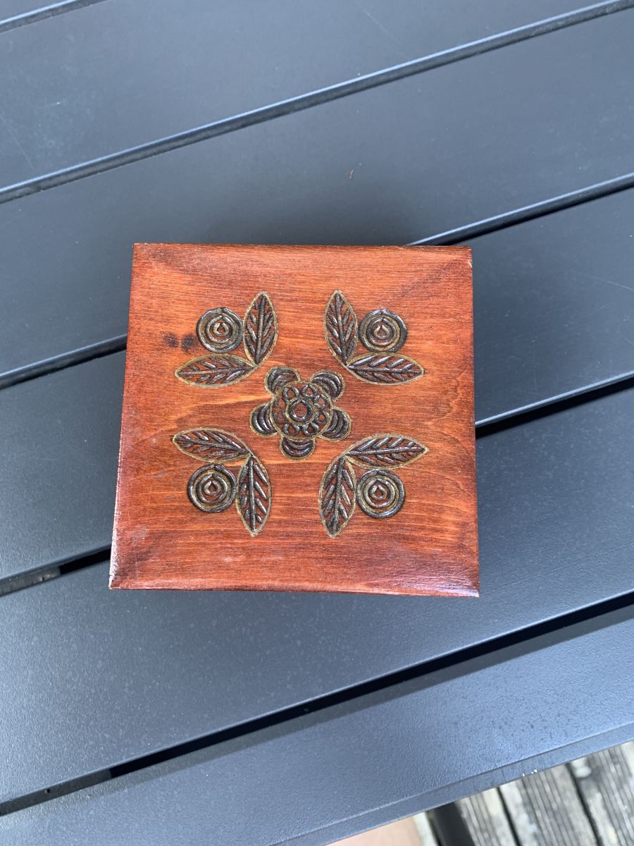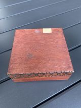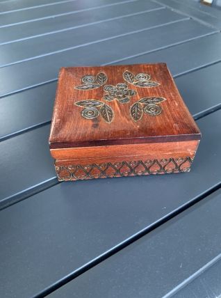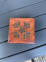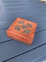 Boîte vintage carré en bois gravée tres bon etat elle fait 10x10cm pour une hauteur de 4cm