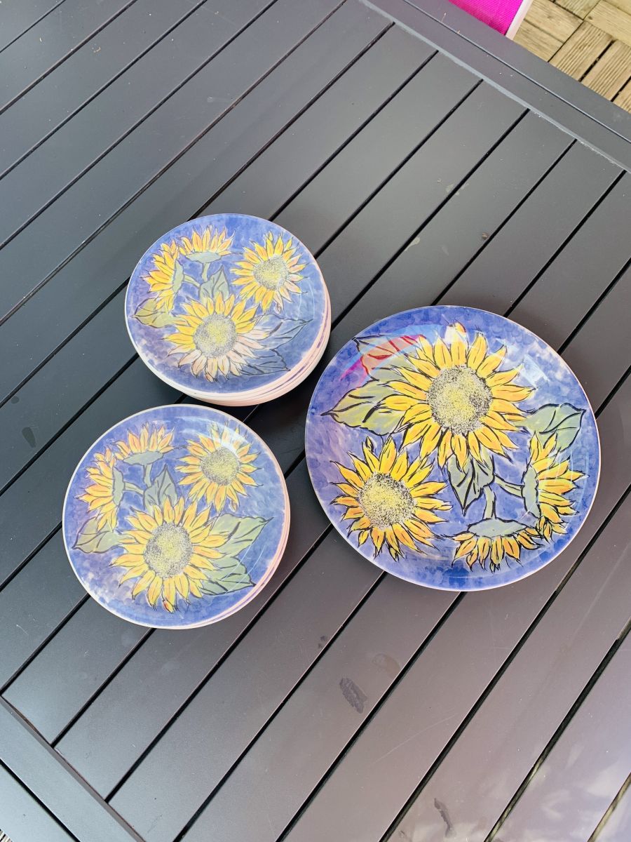 Assiettes vintage italy ceramique quadrifoglio tournesol