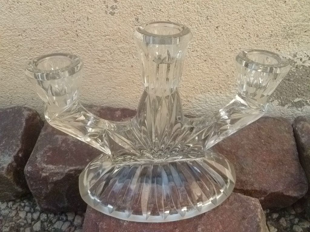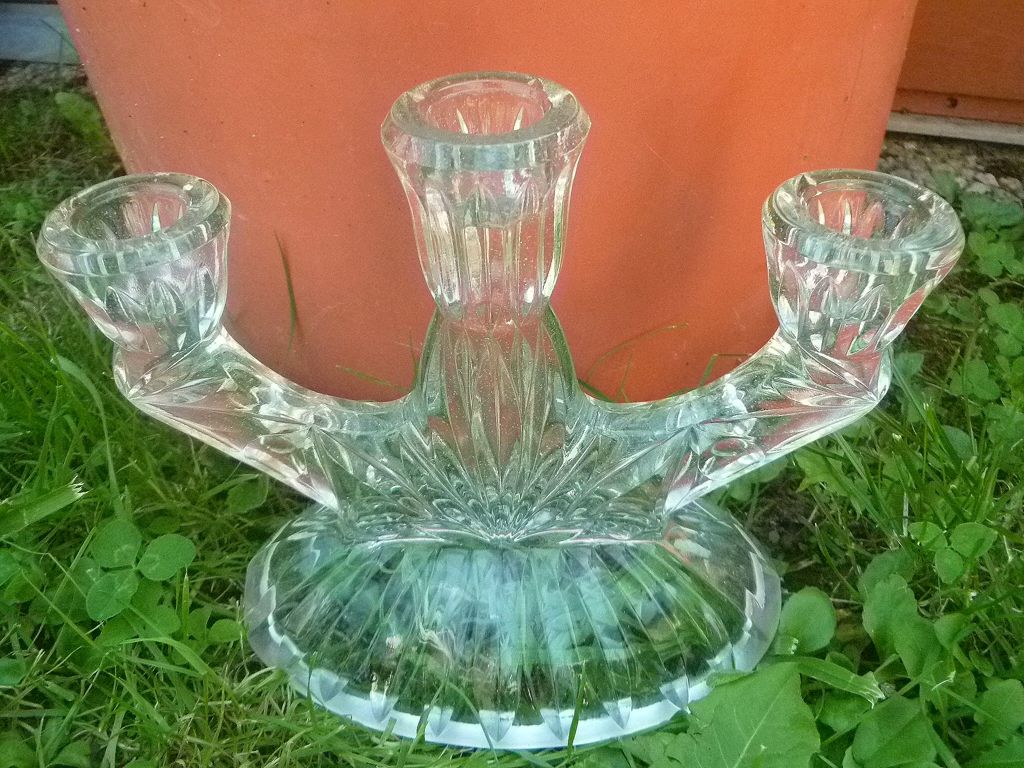 Chandelier 3 feux, verre moulé, vintage