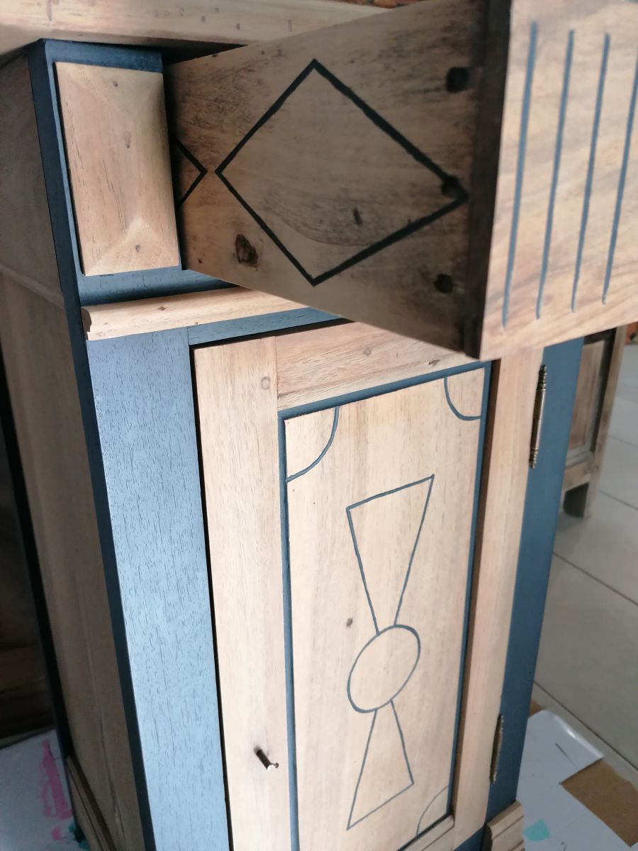J'ai peint des motifs géométriques sur les faces externes du tiroir pour un peu plus de coquetterie.