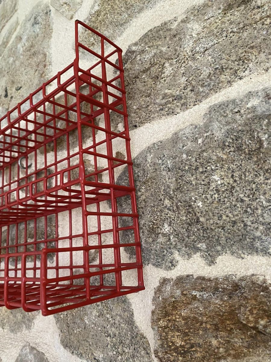 Étagère murale en métal de couleur rouge. 3 compartiments.