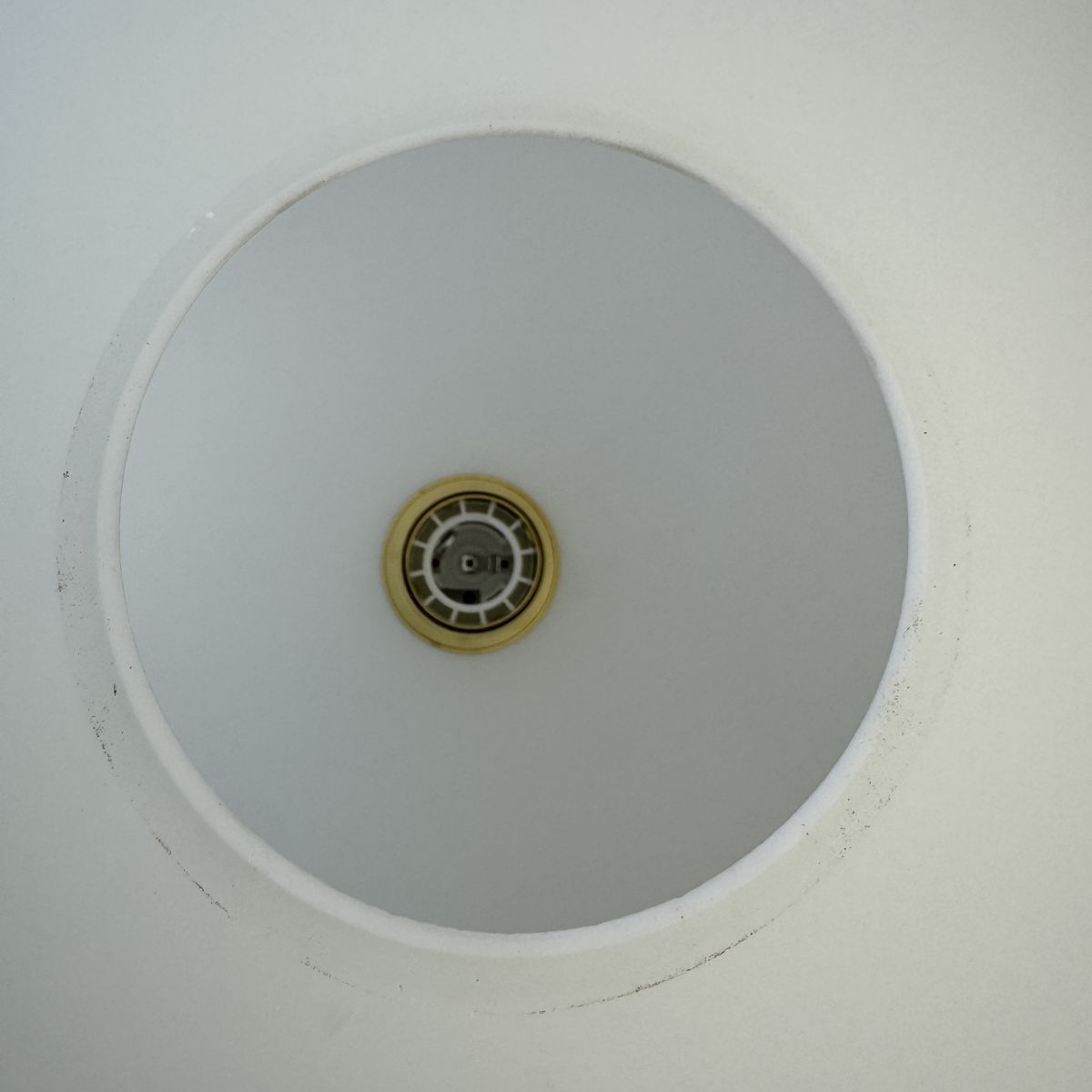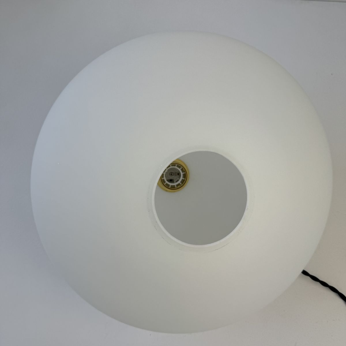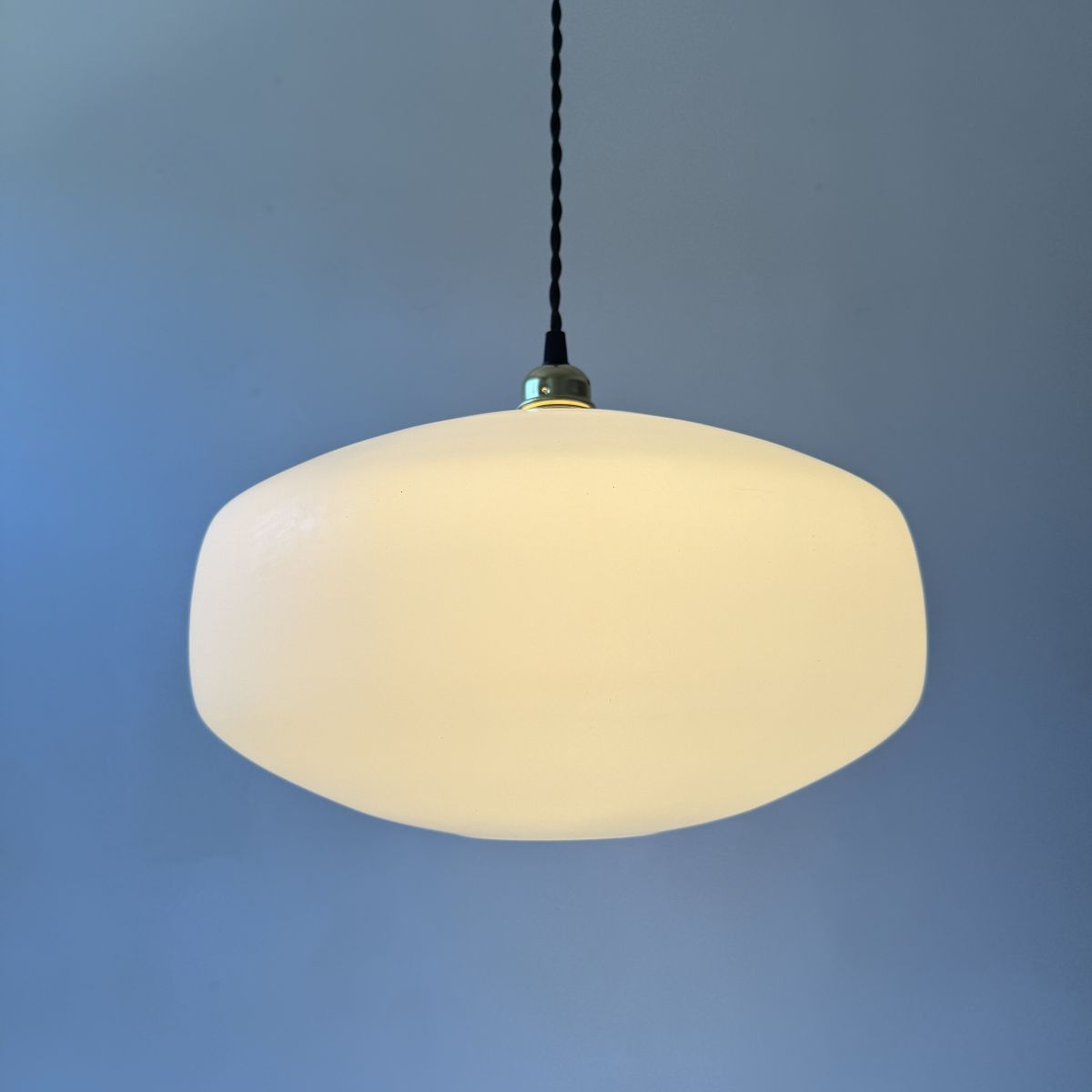 Belle suspension en opaline blanche mat des années 1970. Format XL. Lumière tout en douceur. En bel état général.