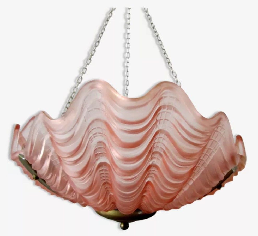 lustre coquille rose art deco 1930 verre moulé epais