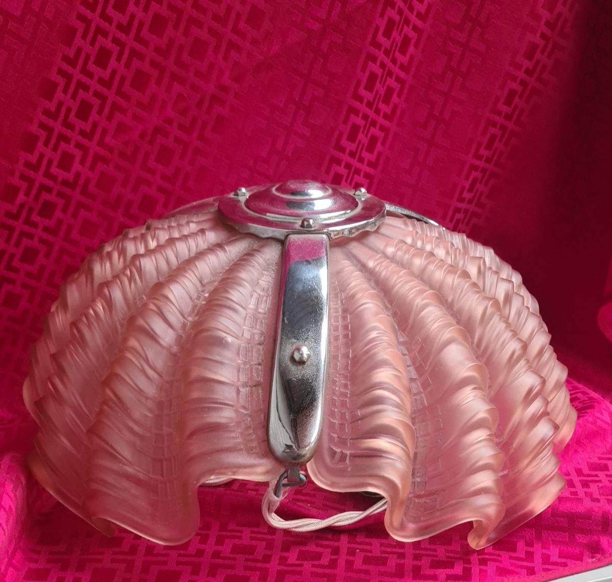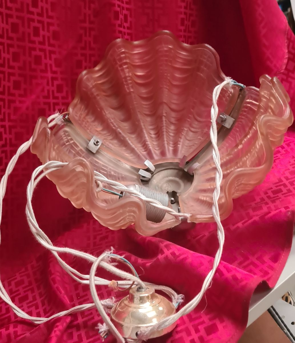 lustre coquille rose art deco 1930 verre moulé epais non si