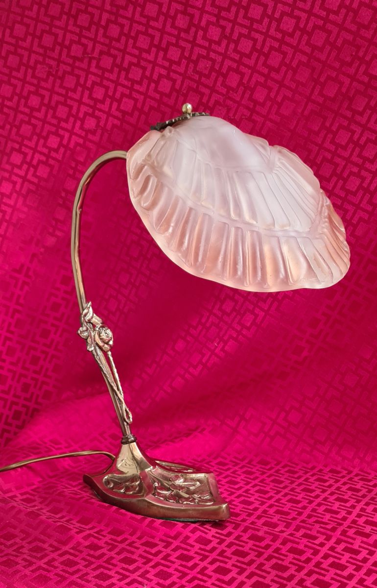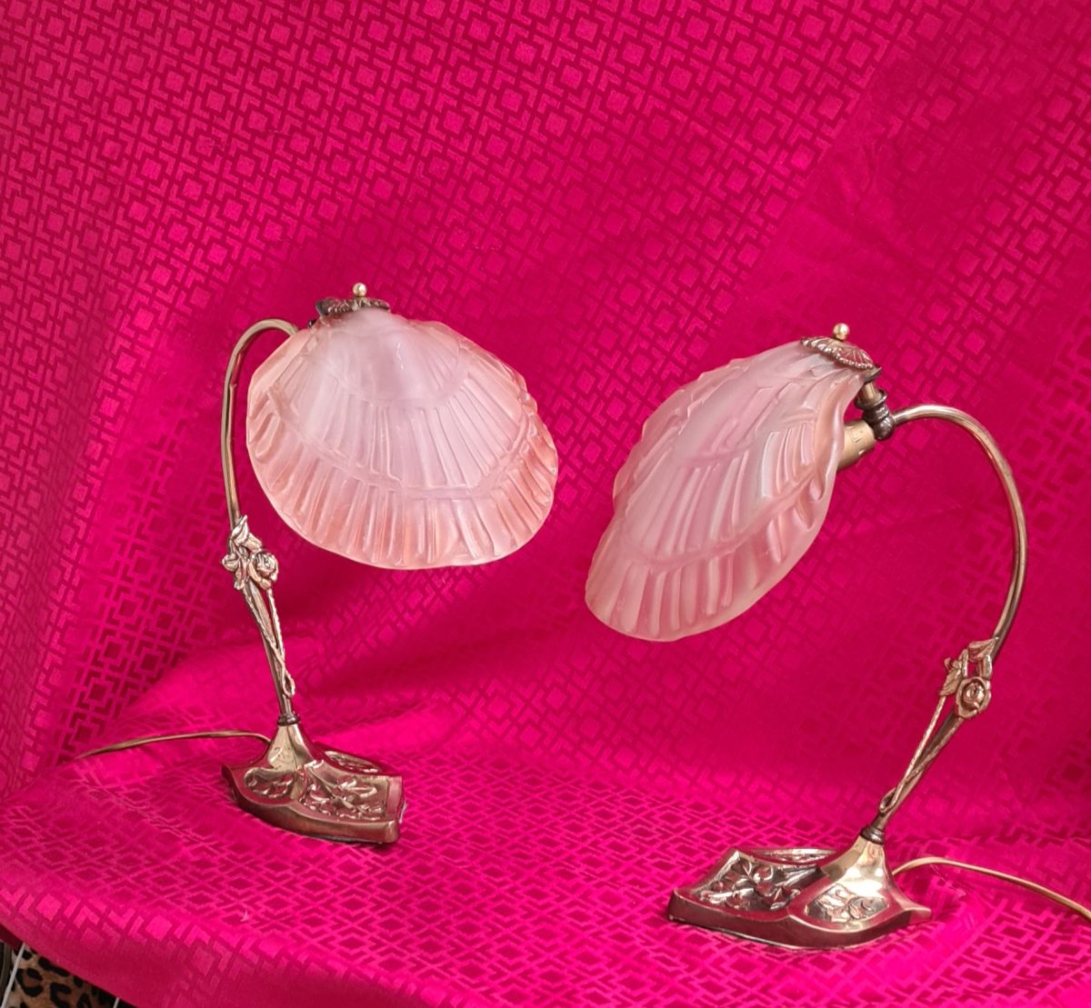 paire de lampes art nouveau bronze petale de verre moulé art deco