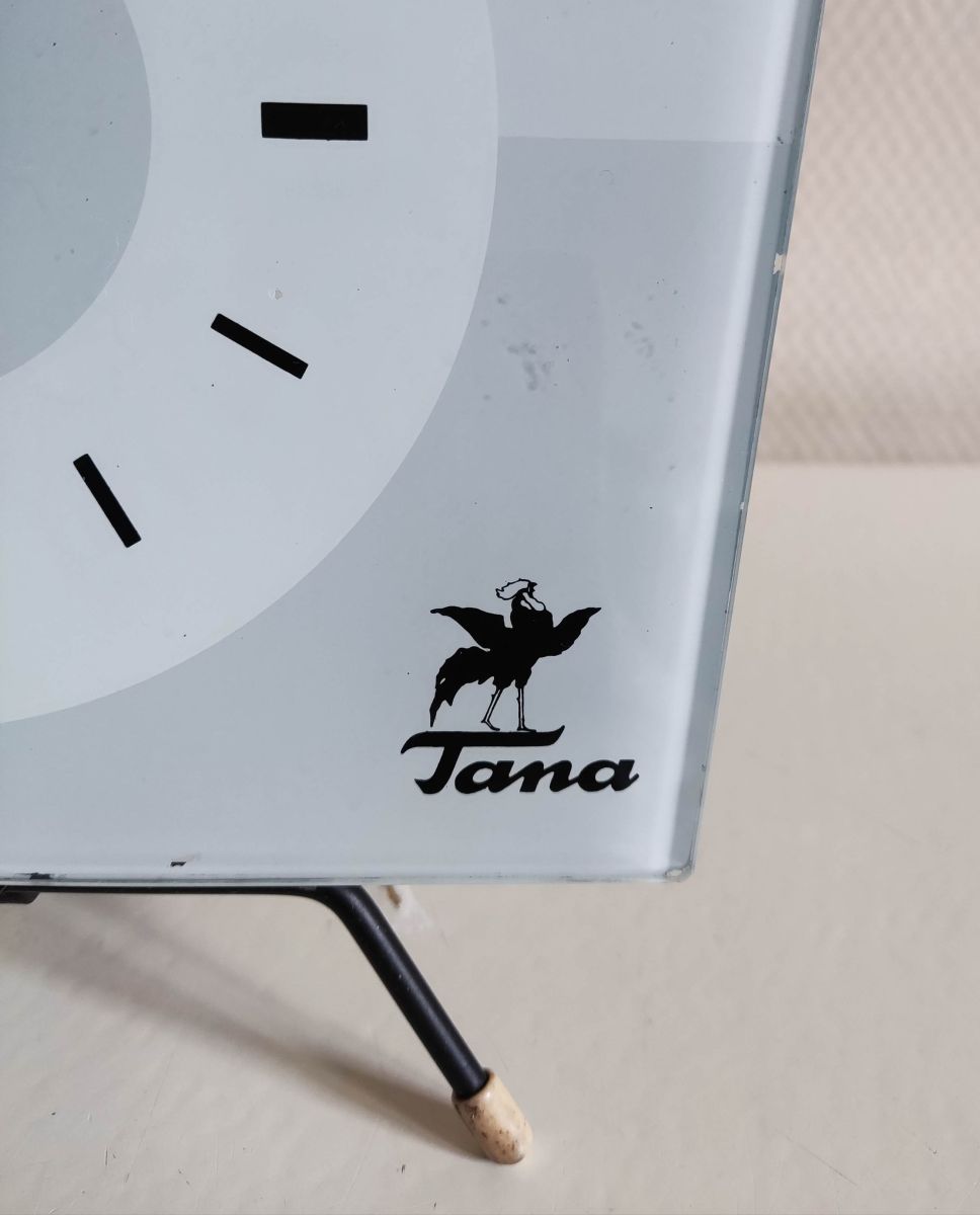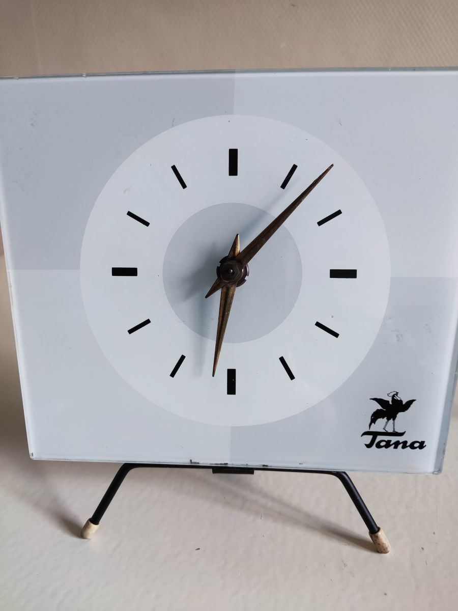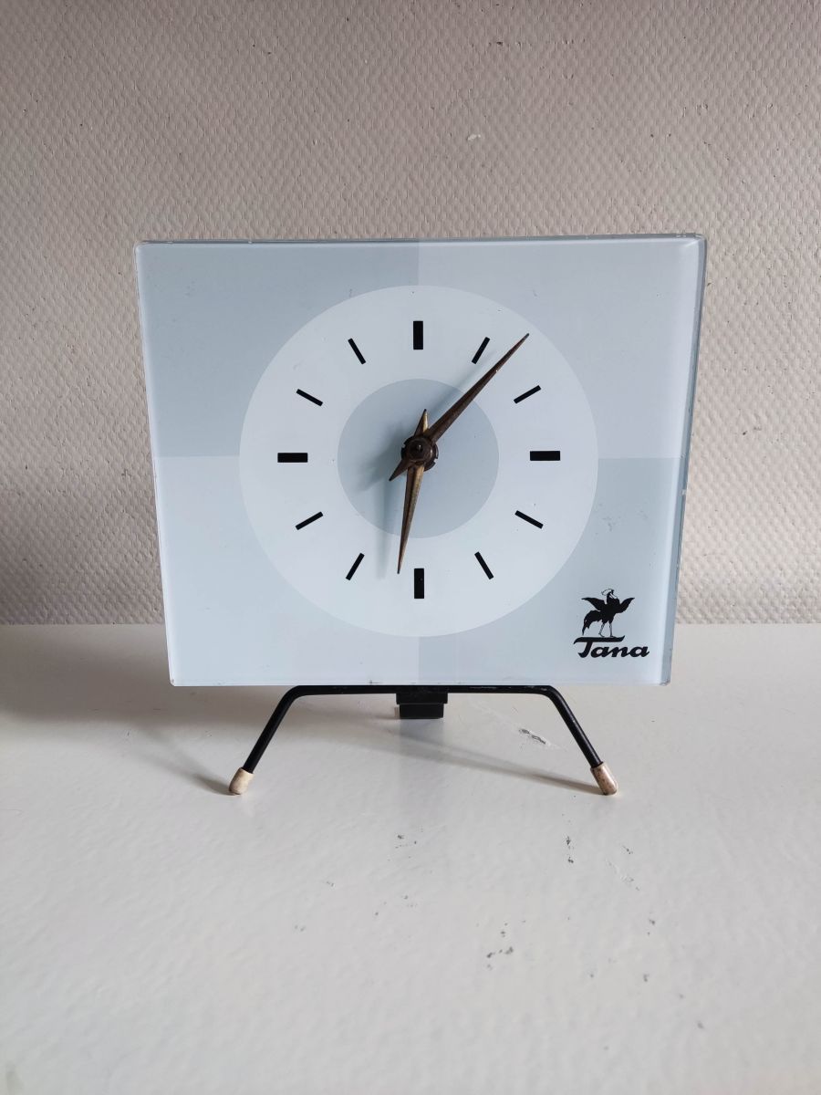 pendule électrique Tana vintage à poser en verre sur pieds en métal