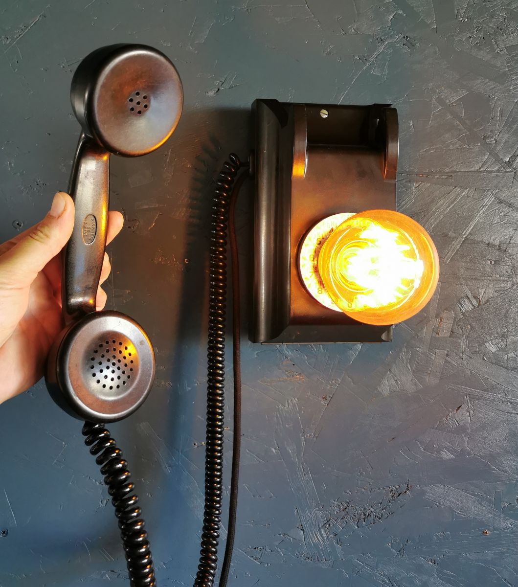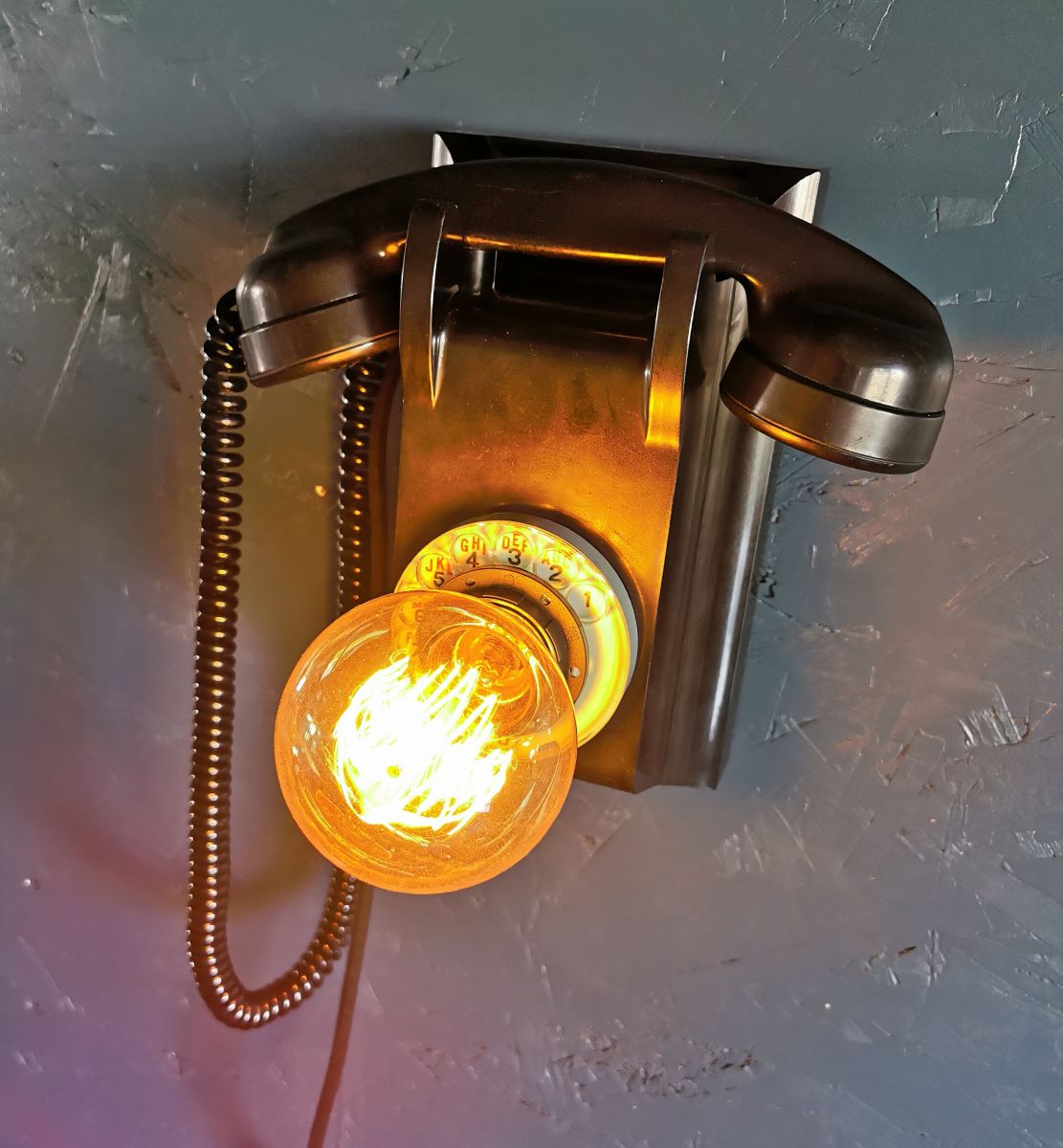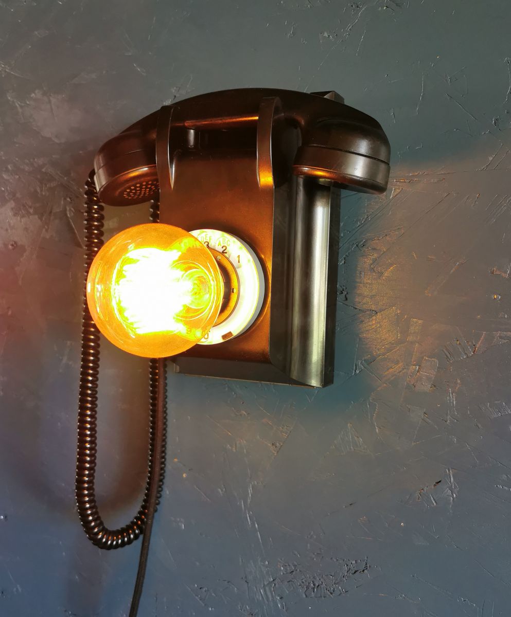 Cette lampe murale a vu le jour grâce à un téléphone mural des années 40-50.