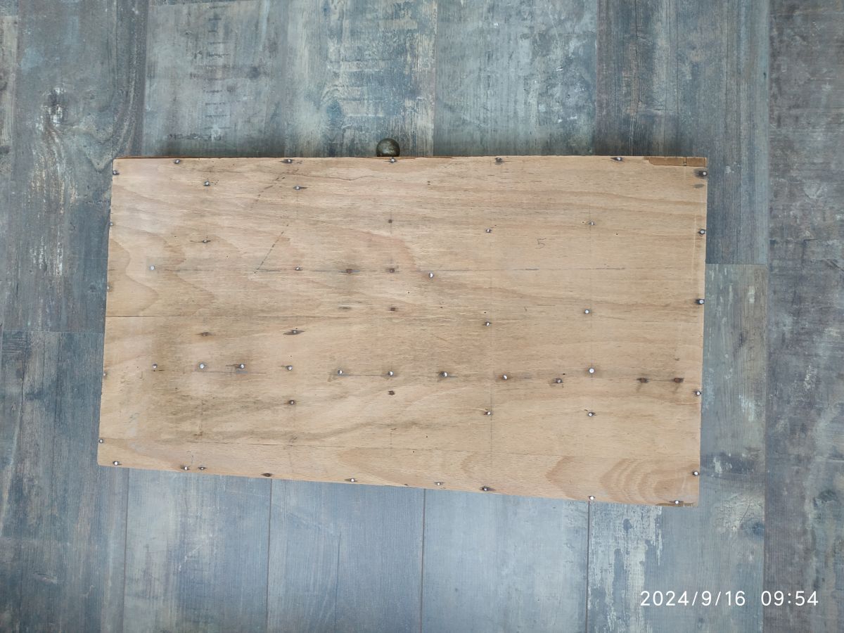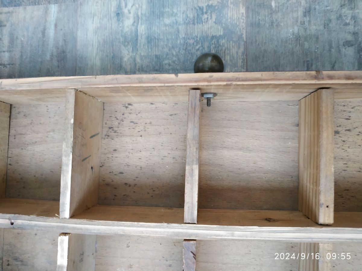 De conception artisanale , tiroir ancien composé de 18 compartiments . Bois brut.