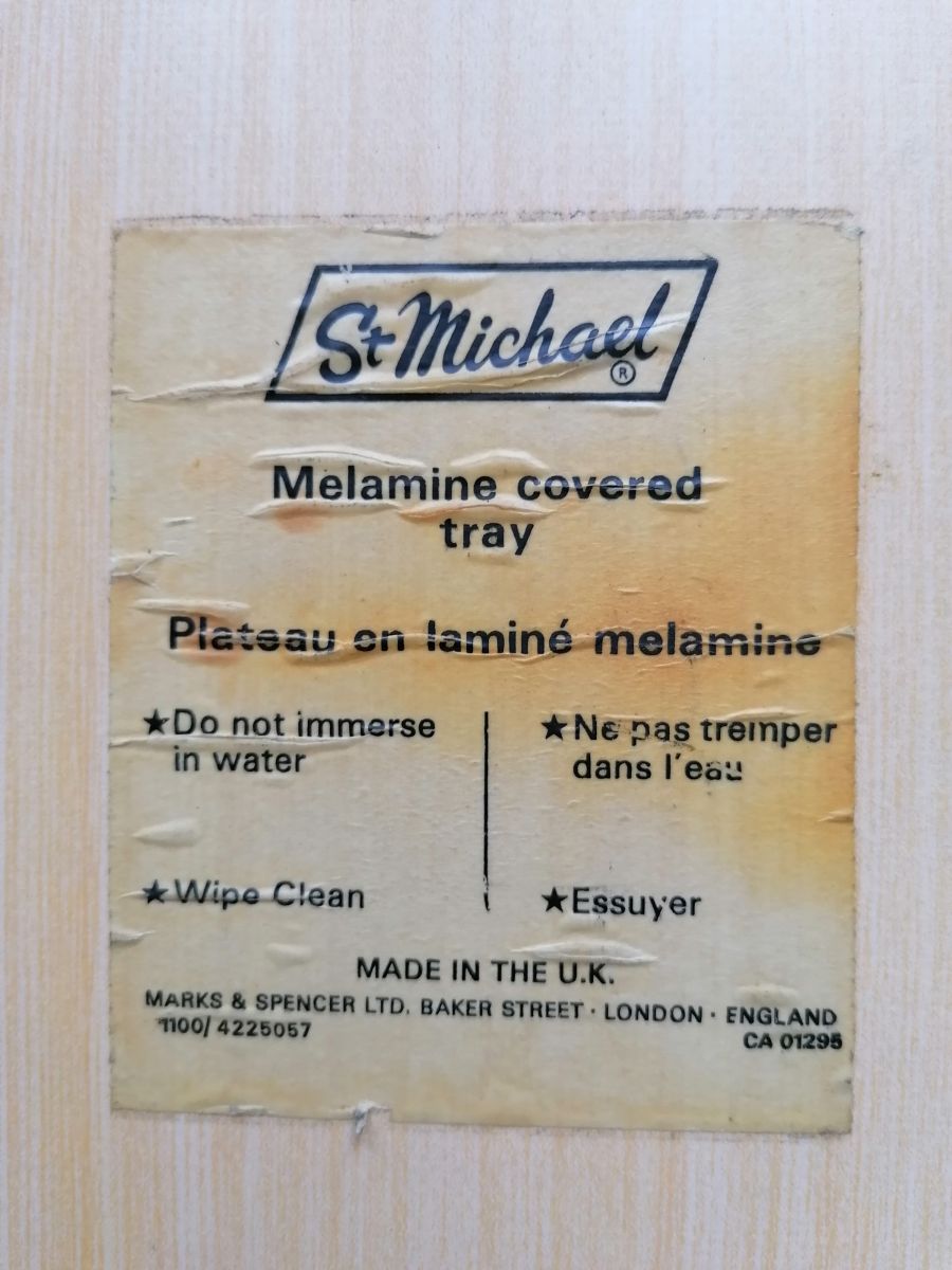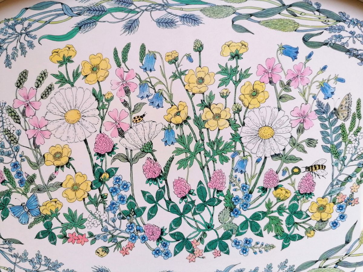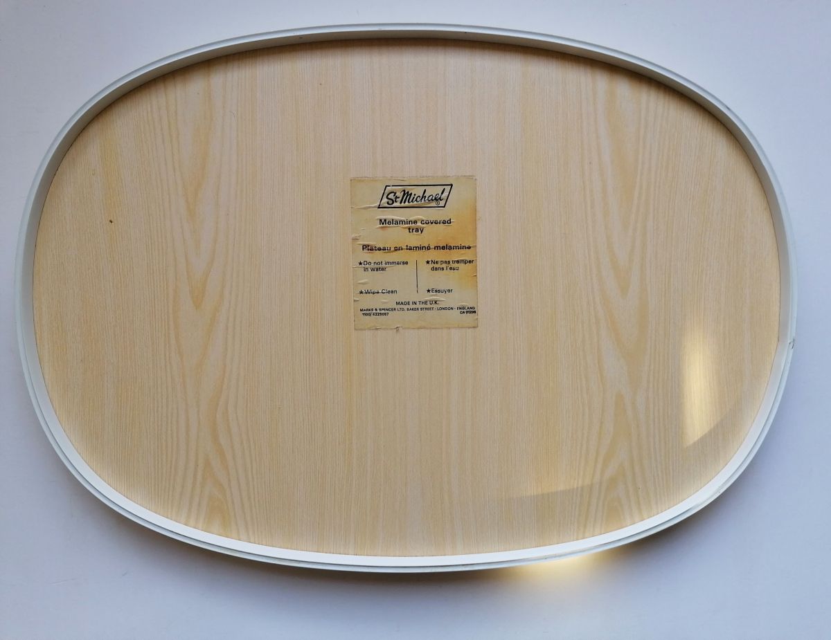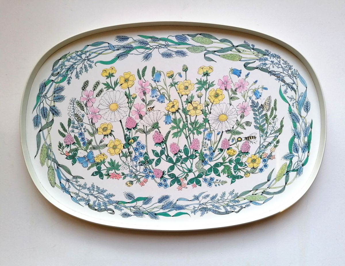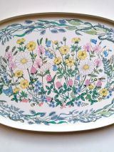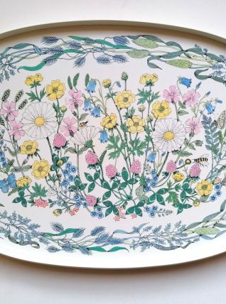 Ravissant plateau en bois recouvert de mélaminé. Années 80. Décor floral printanier. En parfait état