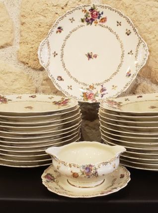 De jolis dessins de fleurs et détails dorés décorent ce magnifique service en porcelaine de Limoges signé Jammet Seignolles exclusivité.