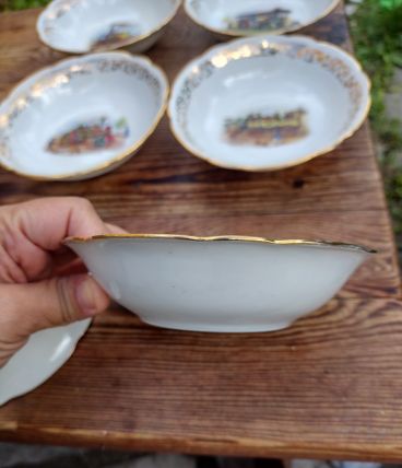 8 jolies petites coupelles + une grande en porcelaine avec de beaux motifs intérieurs.