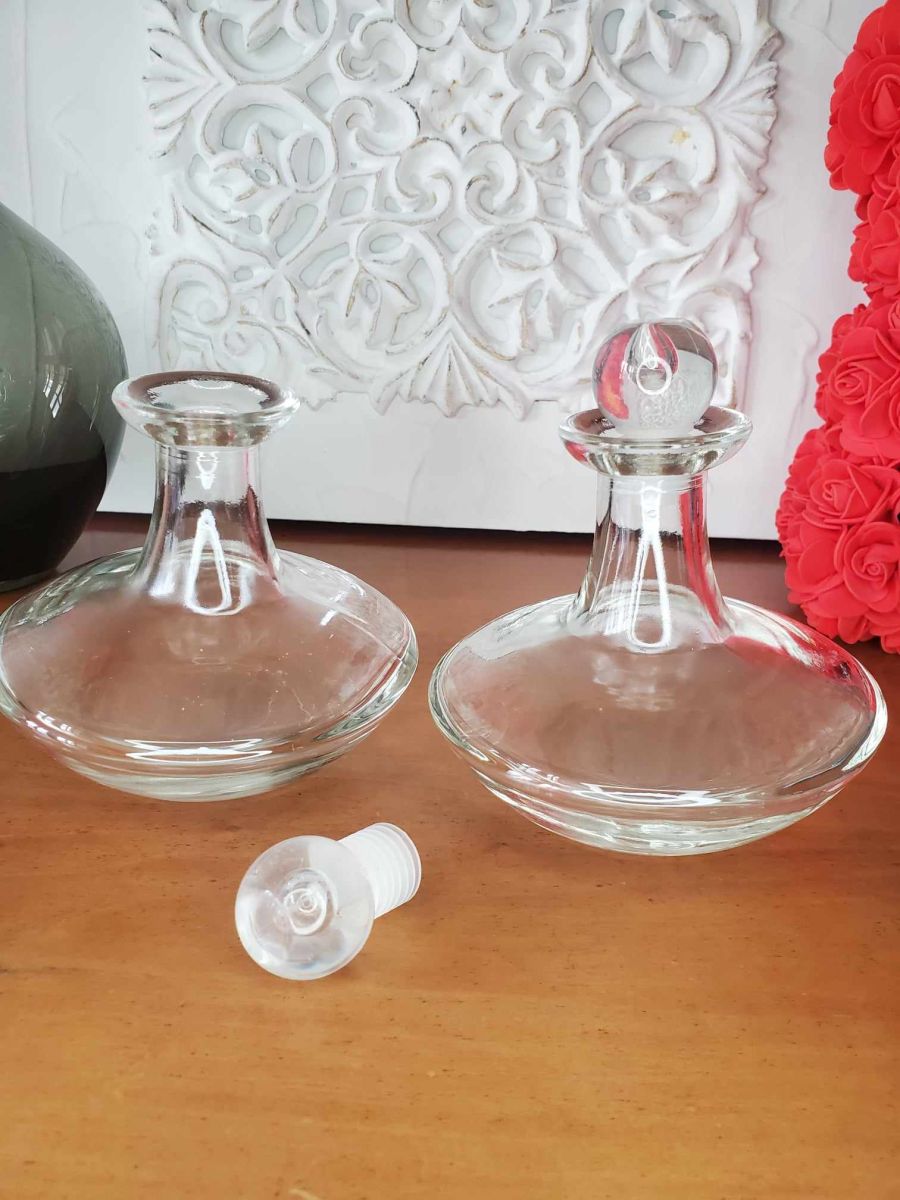 Ensemble de 2 petites carafes à liqueur de forme sphérique