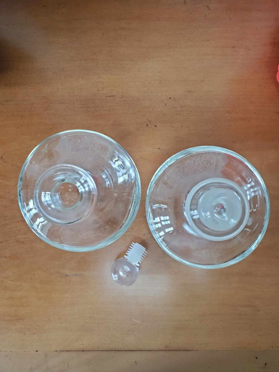 Verre transparent pour les carafes et bouchons transparents en plastique avec une bulle d'air.