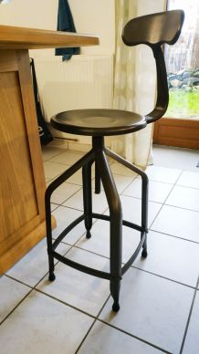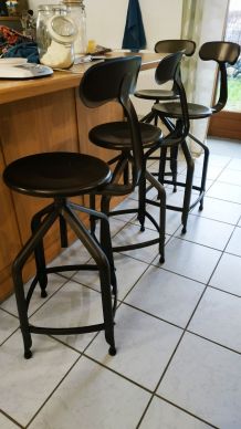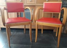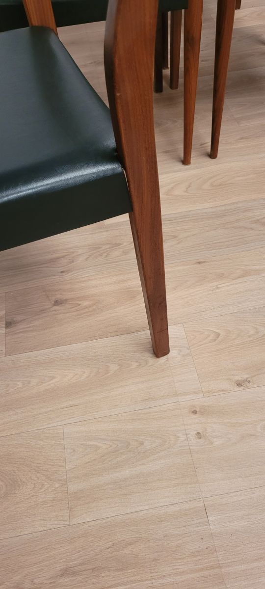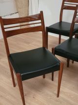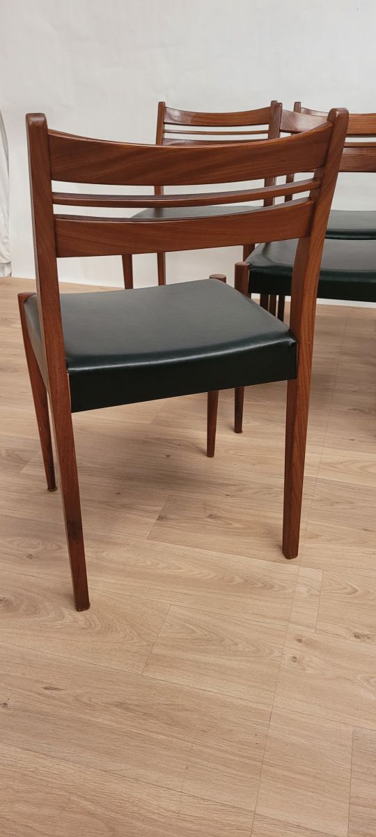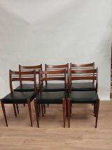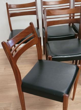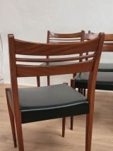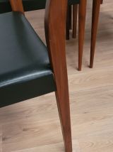 6 chaises en simili cuir noir et teck du Danemark années 60 .