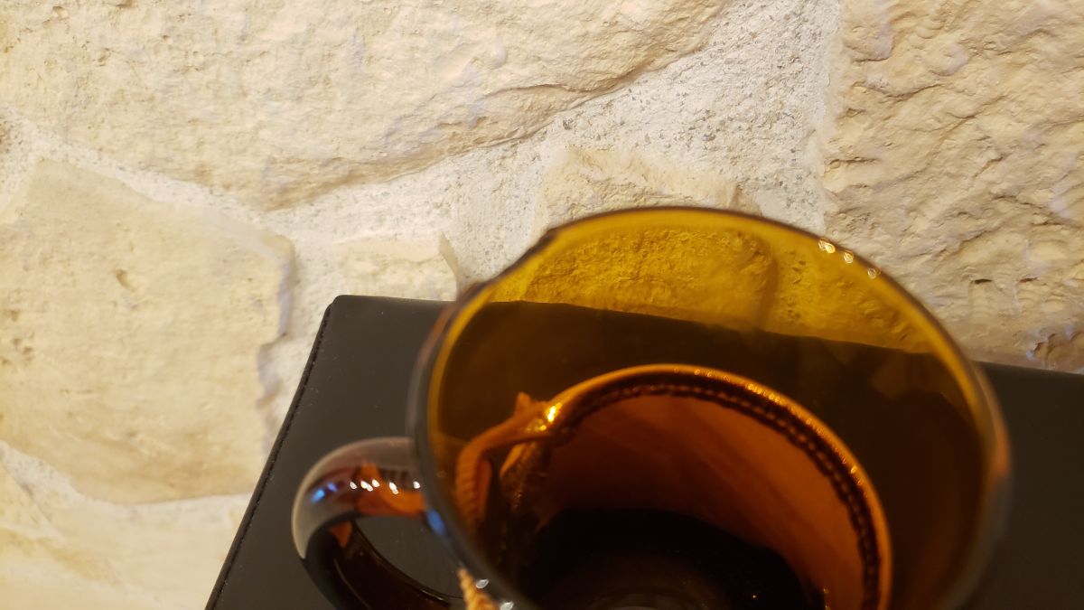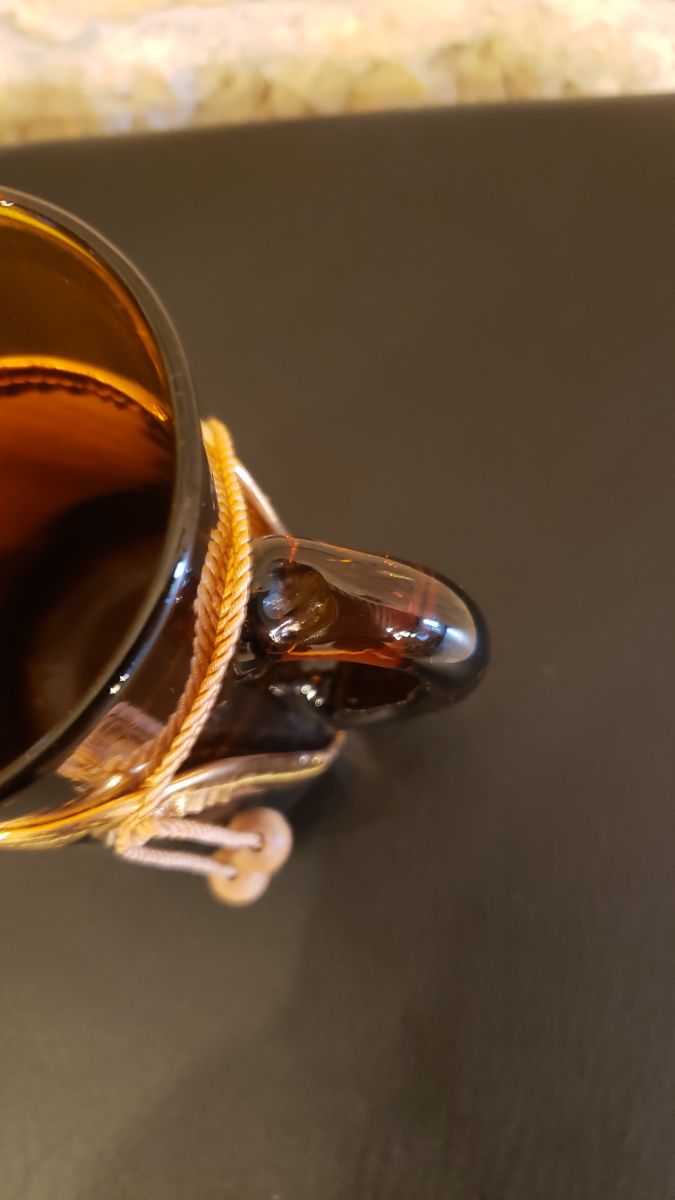 Le tout est en parfait état. Seul le verre beige présente un éclat sur le bord et le noir, sur la poignée (voir photos)