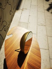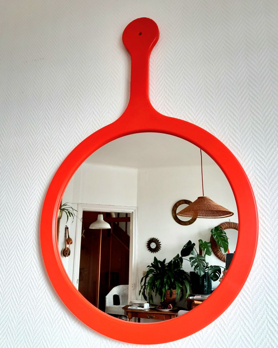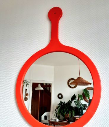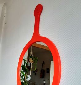 Miroir à suspendre XXL par la maison de design suédoise en plastique rouge.
