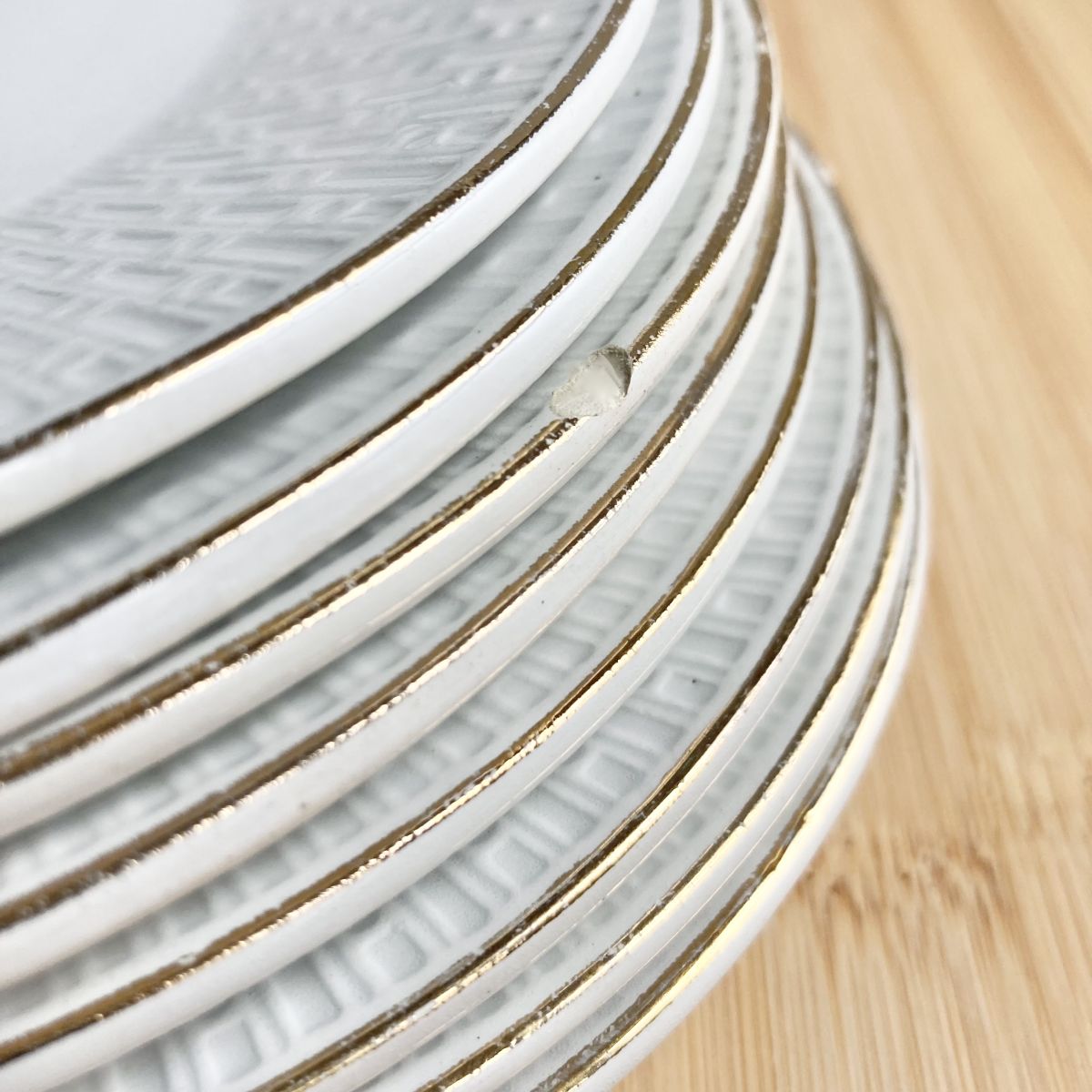 > 1 assiette ébréchée = prix pour 7 assiettes, la 8ème offerte.