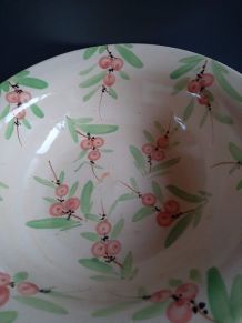 Magnifique Faïence rose poudré / blush, au décor polychrome délicat "Betty"