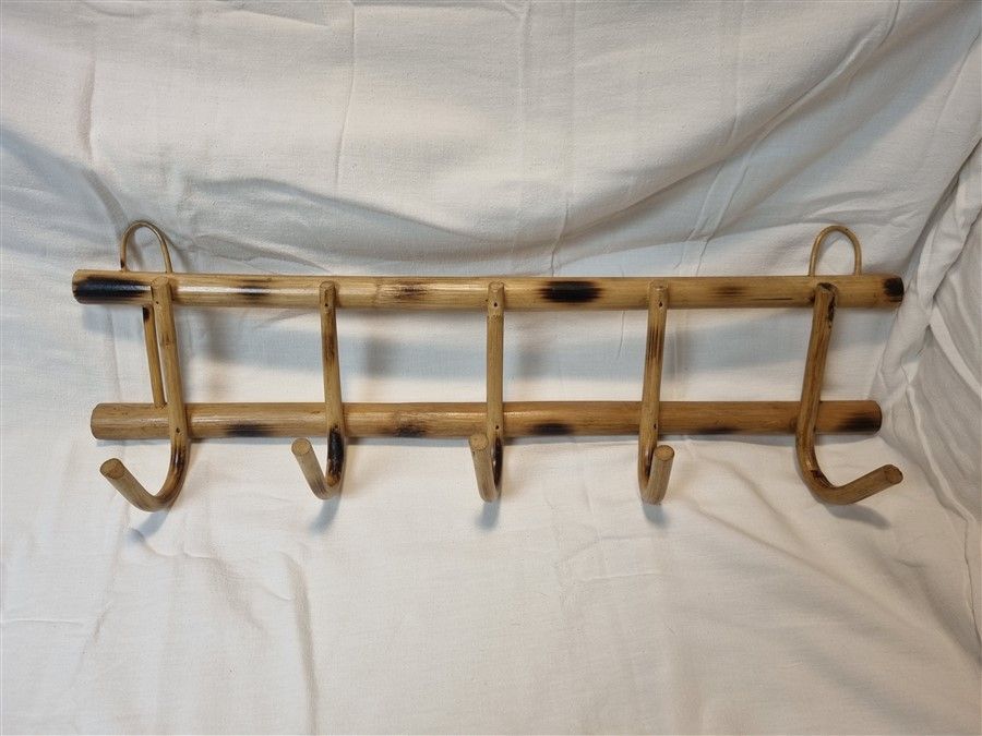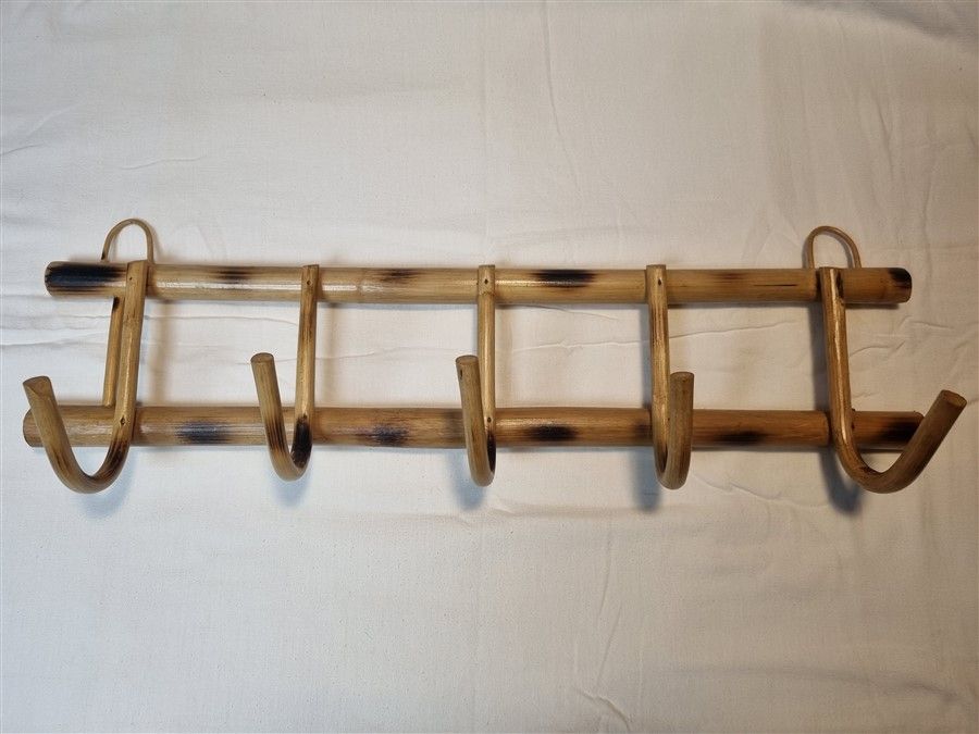 Portemanteau vintage en rotin, à 5 patères.