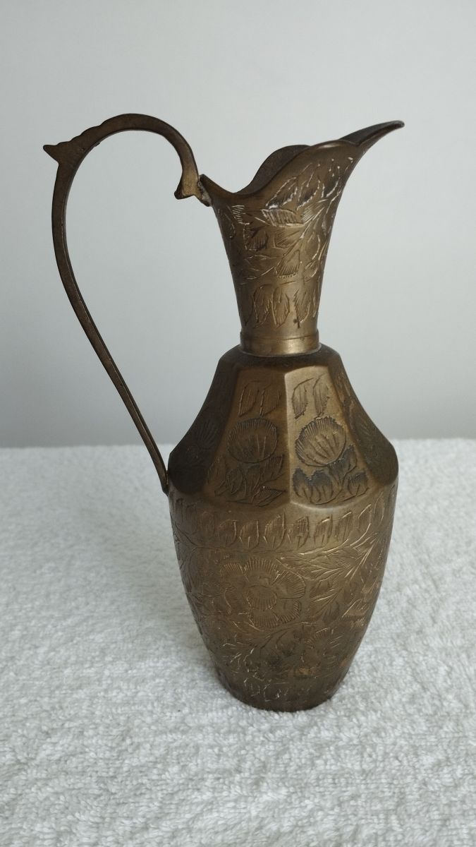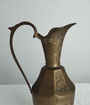 Cruche en Laiton Oriental décor floral