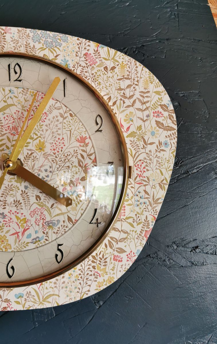 Horloge vintage pendule murale silencieuse années 60 "Fleurs des champs"
