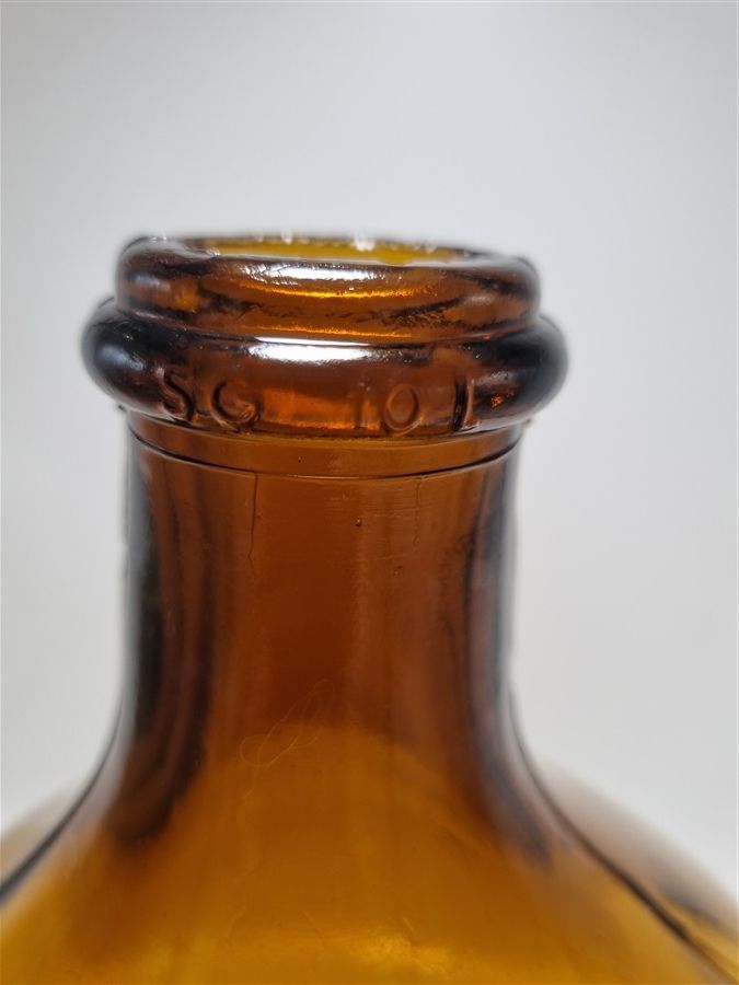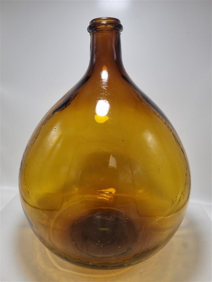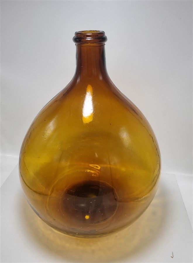 Dame Jeanne vintage en verre ambré, contenance 10 litres.