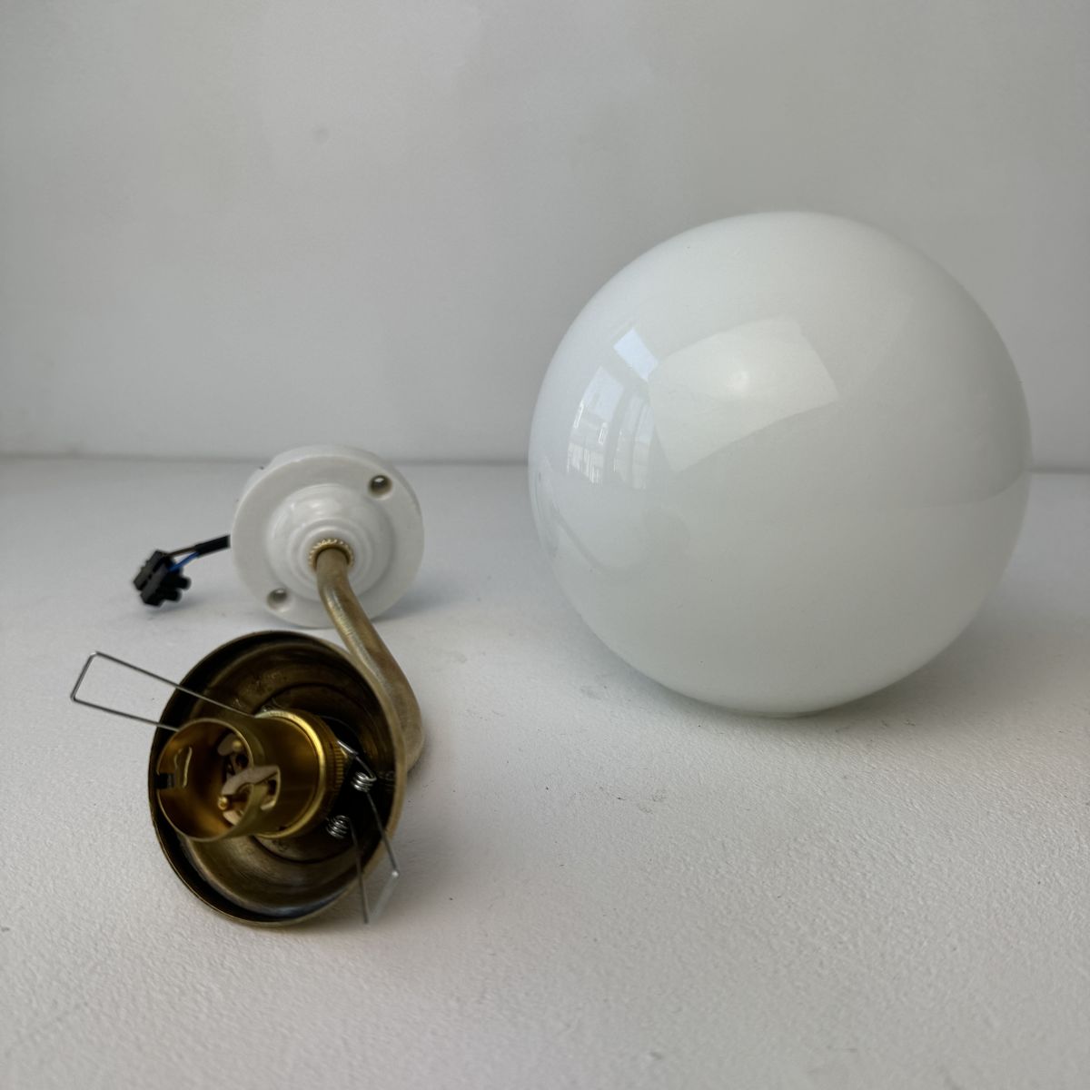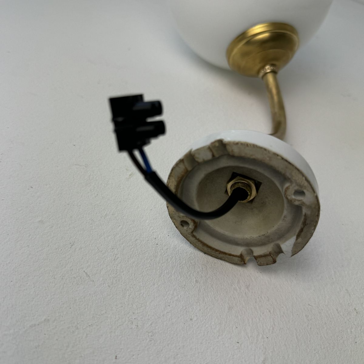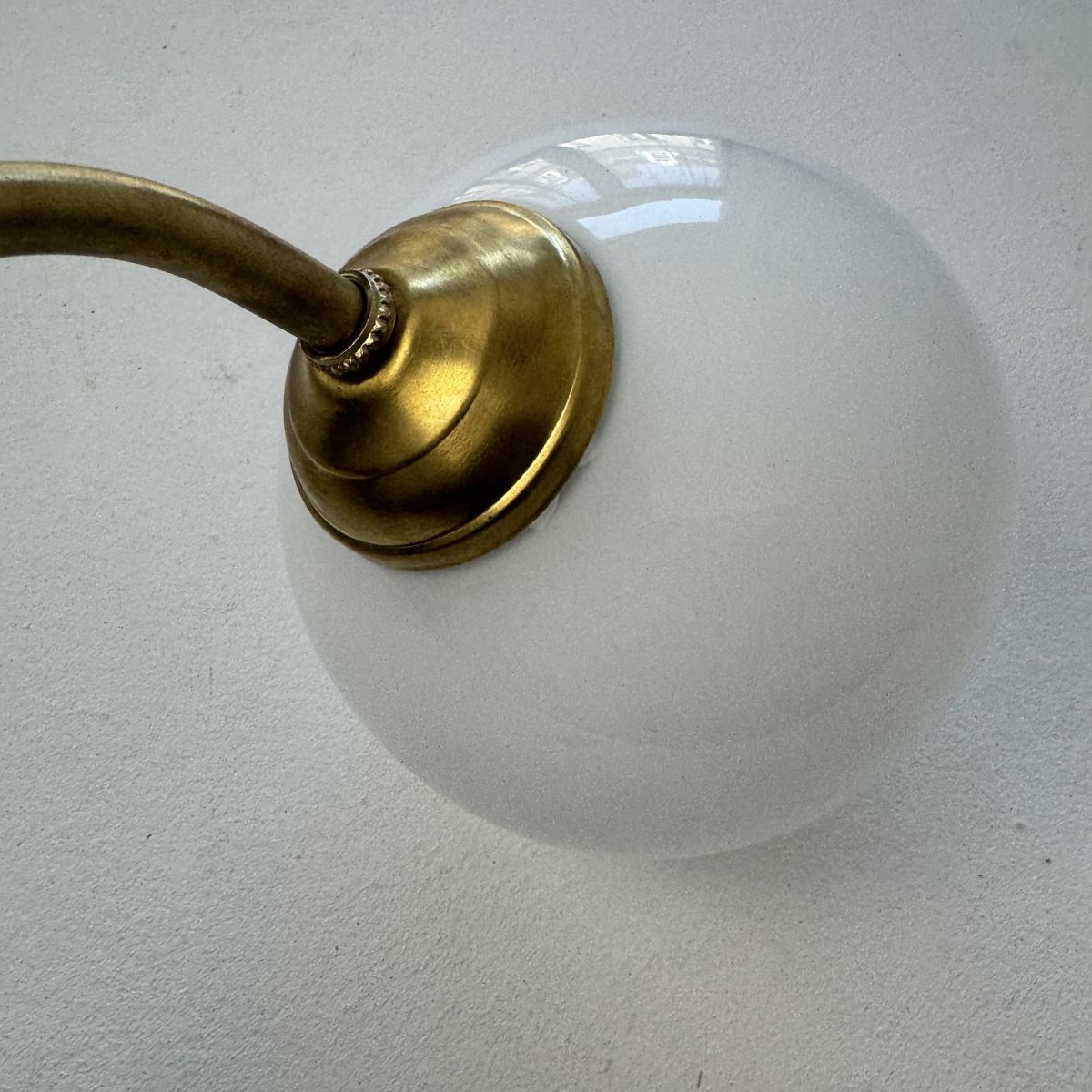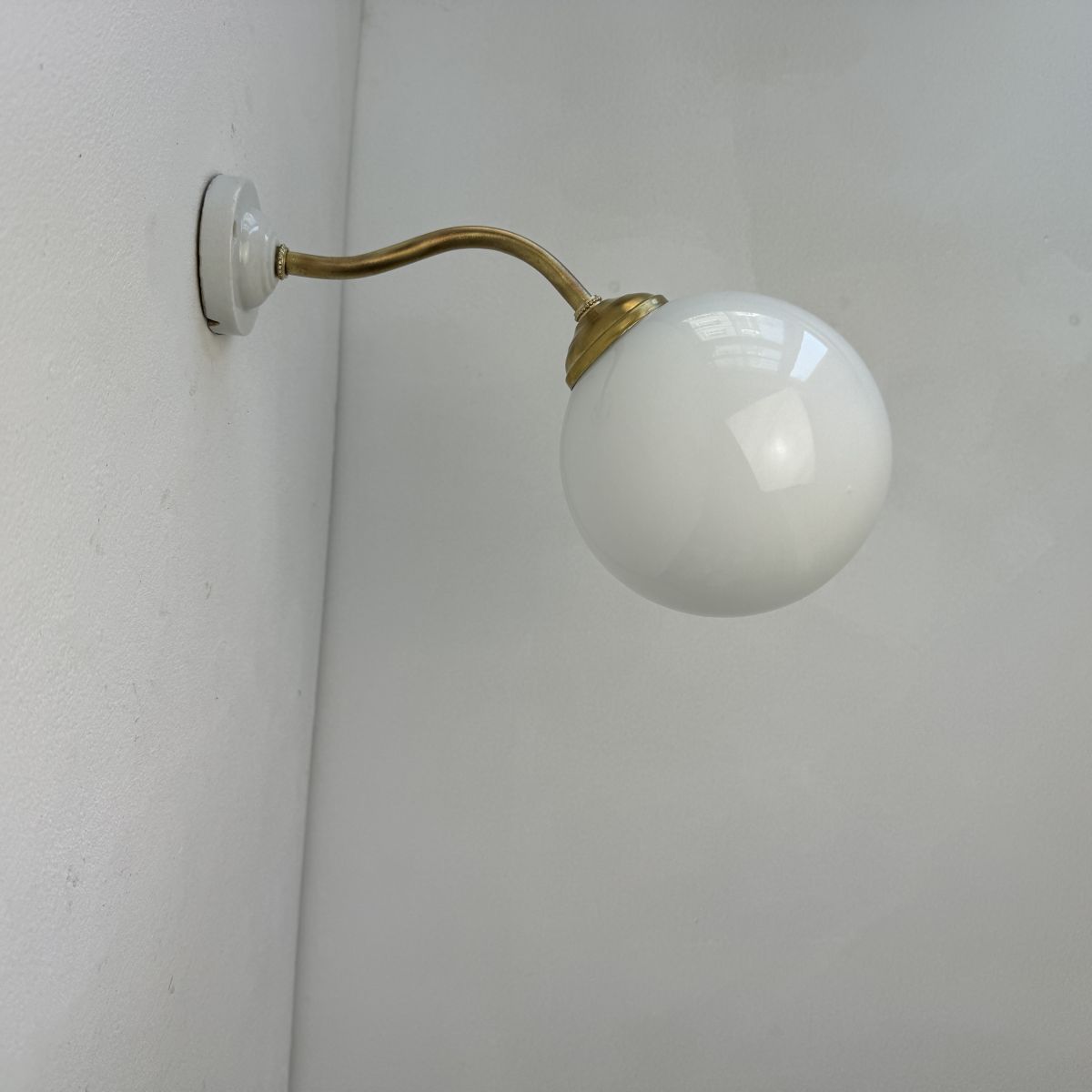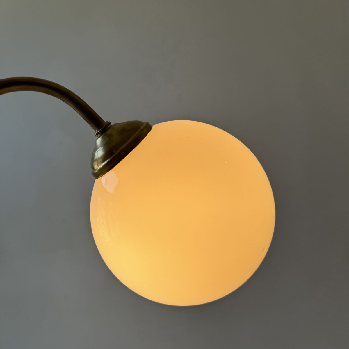 Belle applique col de cygne avec son abat-jour en opaline et sa base en céramique. Belle lumière. Quelques traces du temps.