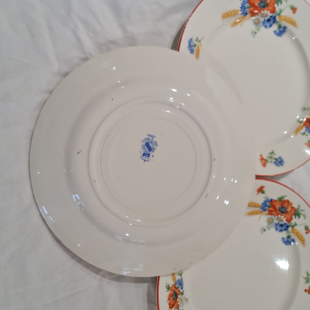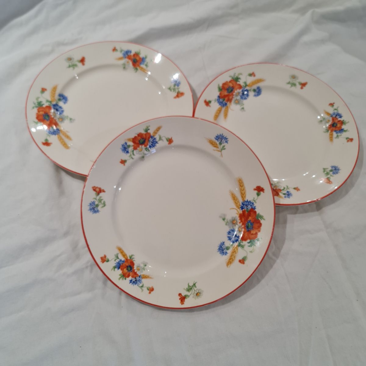 Modèle CERES décor de bouquet de fleurs avec épis de blé sur fond blanc, bordure liseret rouge.