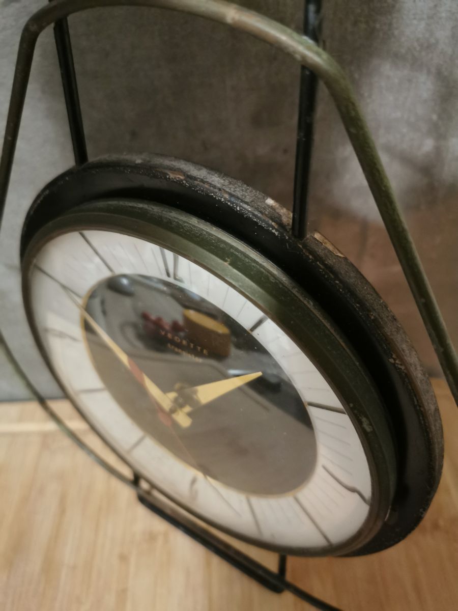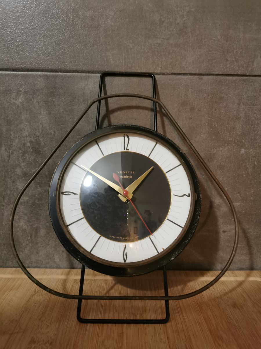 Jolie Horloge murale vintage en métal et qui fonctionne avec 1 pile (fournie).