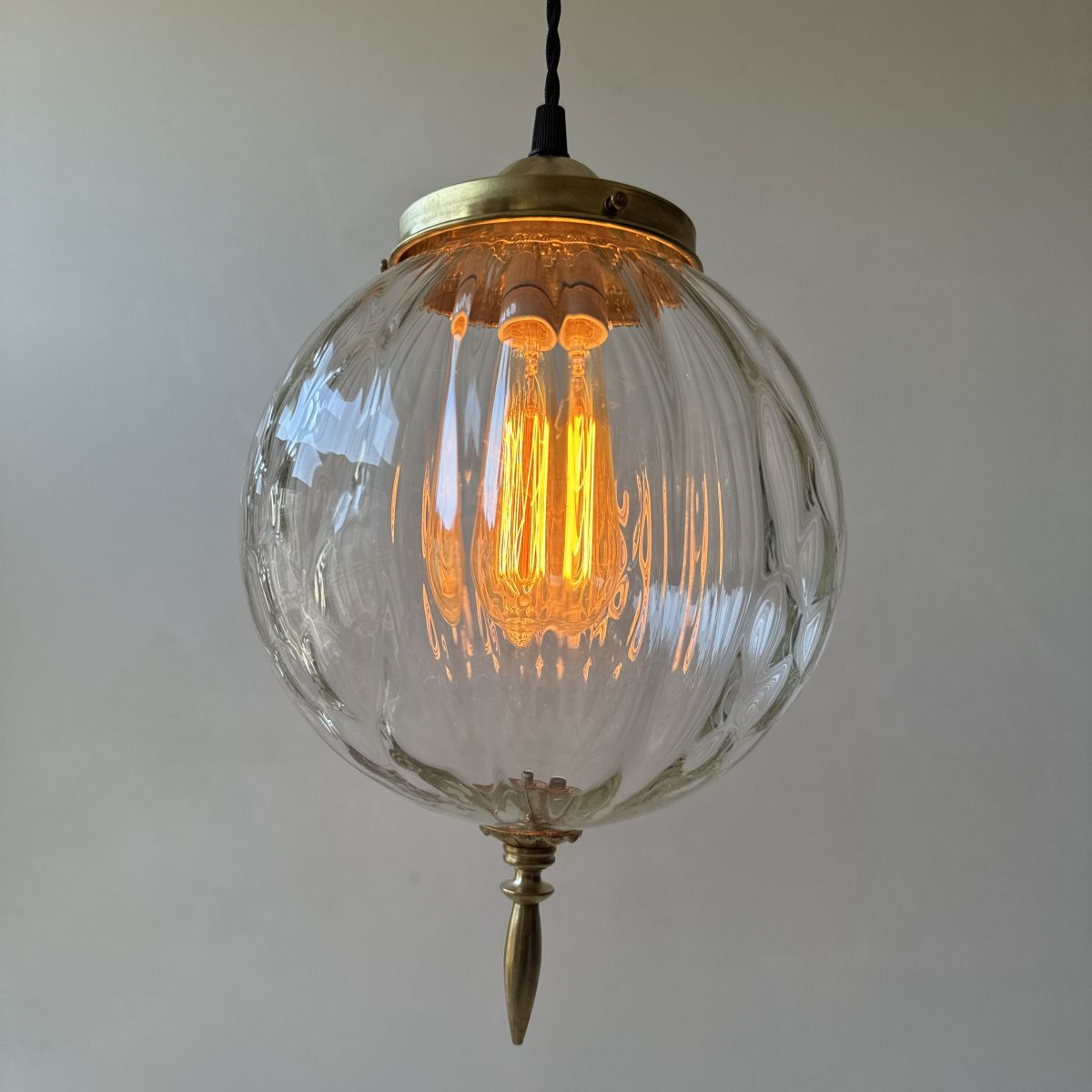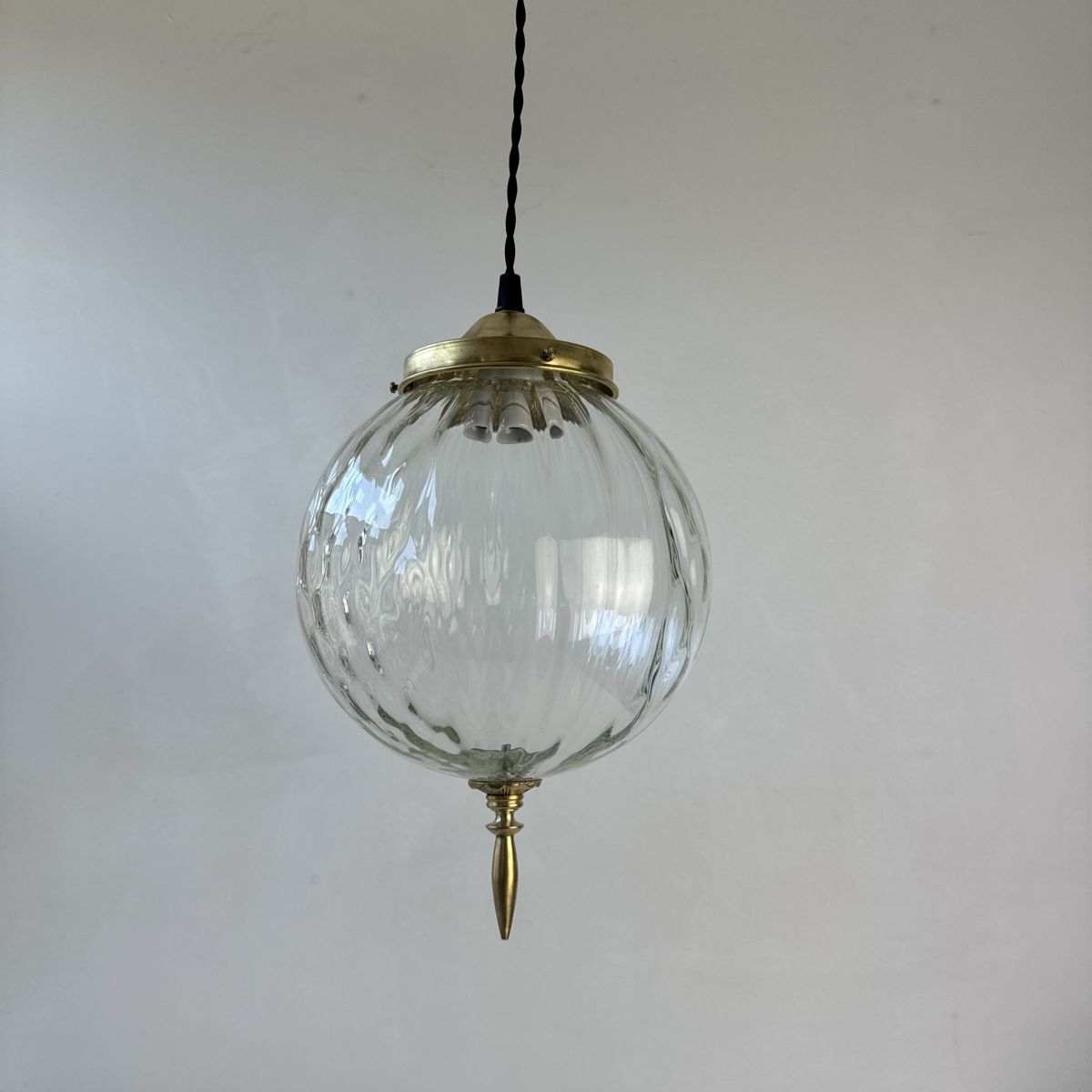 Belle suspension en verre et laiton des années 1930. Très bel état. Idéale avec une ampoule Edison.