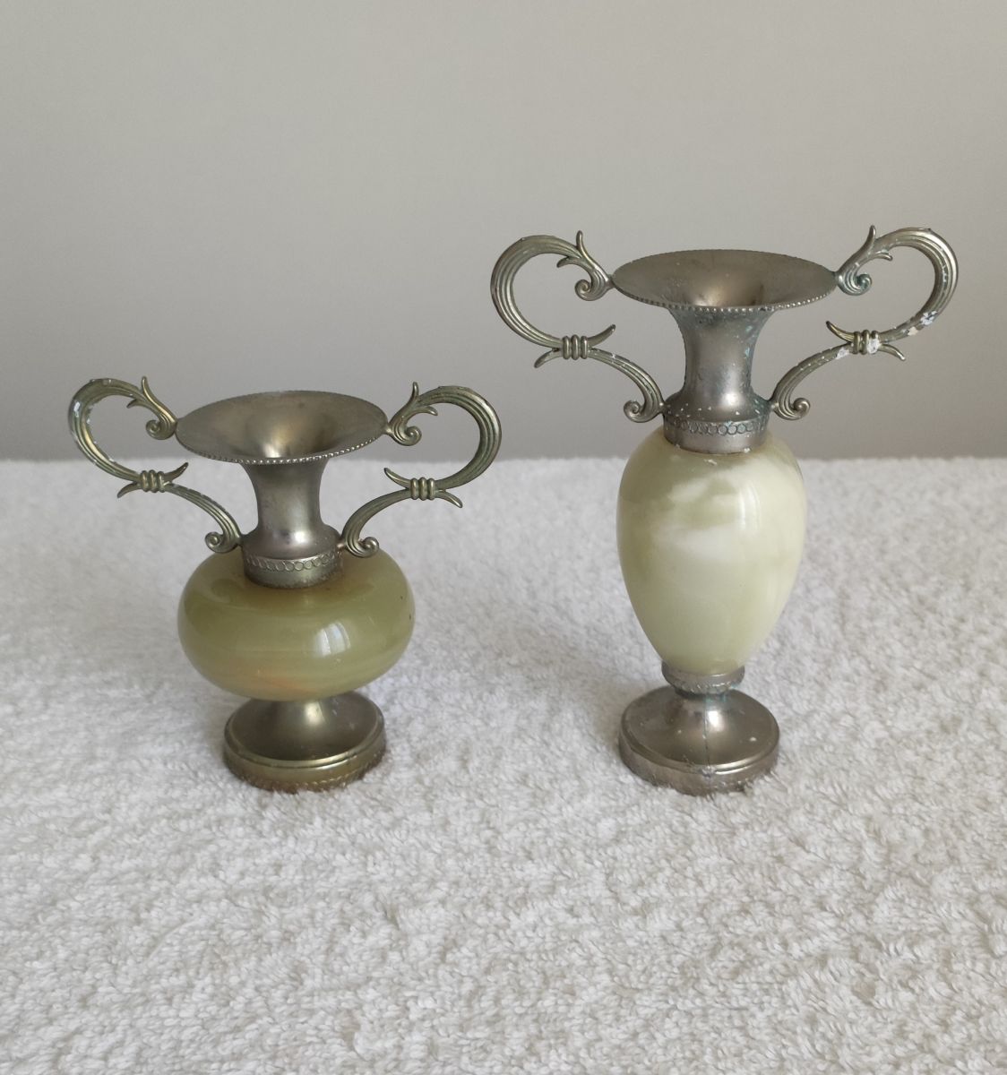 Lot 2 Petits Vases Amphore Décoratif Métal & Onyx