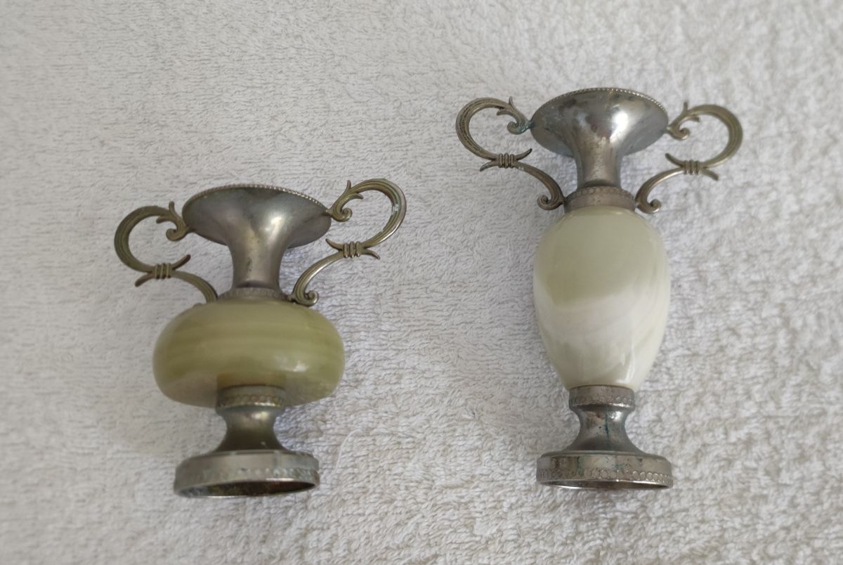 Petites traces de verts de gris (sur le métal) sur les deux vases à nettoyer