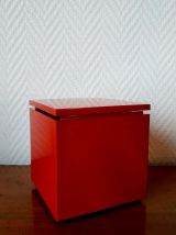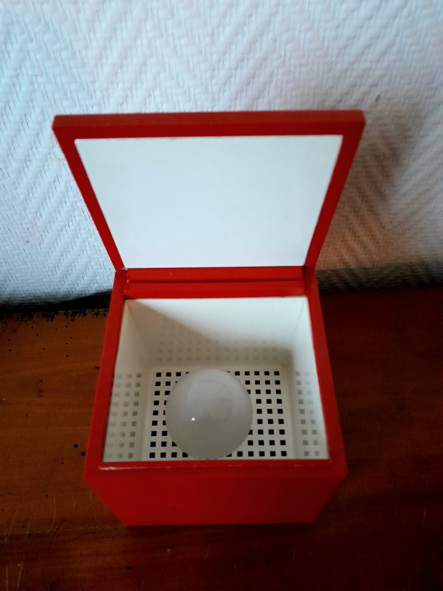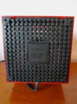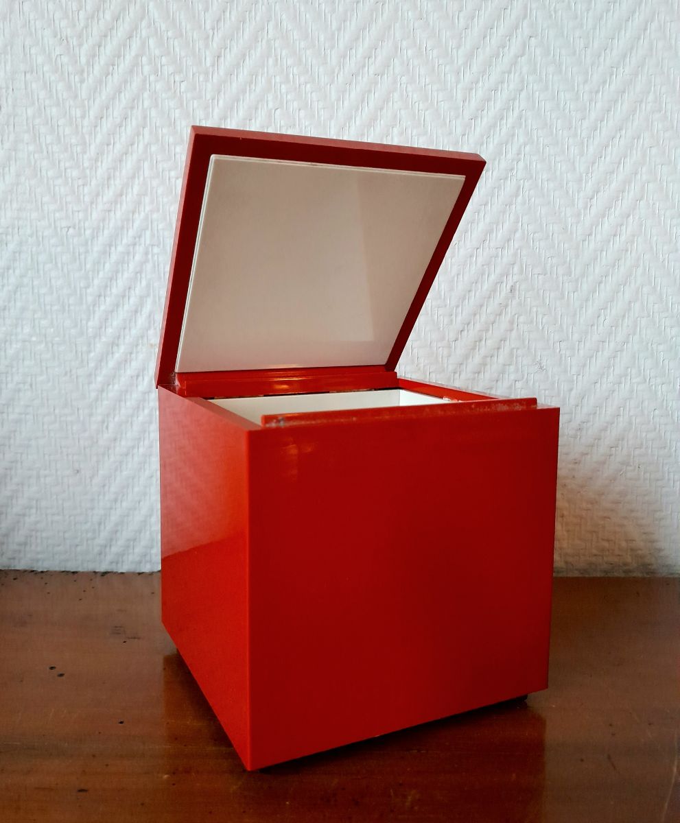 Elle se présente comme une boîte en plastique rouge qui s'allume lorsque l'on ouvre le couvercle. Cuboluce, c'est la lumière dans une boîte ! La plaque du fond est en plastique noir avec marque au revers, l'intérieur est en plastique blanc.