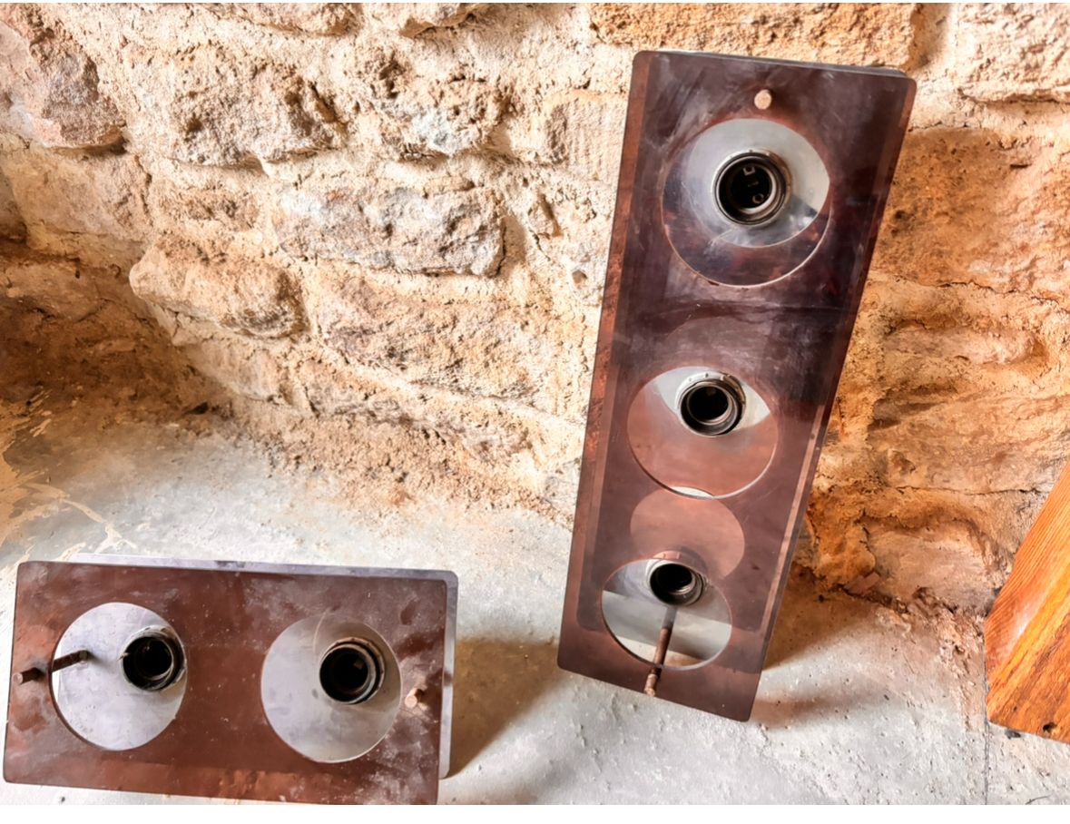 Lot de 2 appliques vintage 70 Jocelyne trocme En métal et plaque plexi marron transparent Une avec 3 ampoules, la seconde avec 2 ampoules. Il faut remette les fils