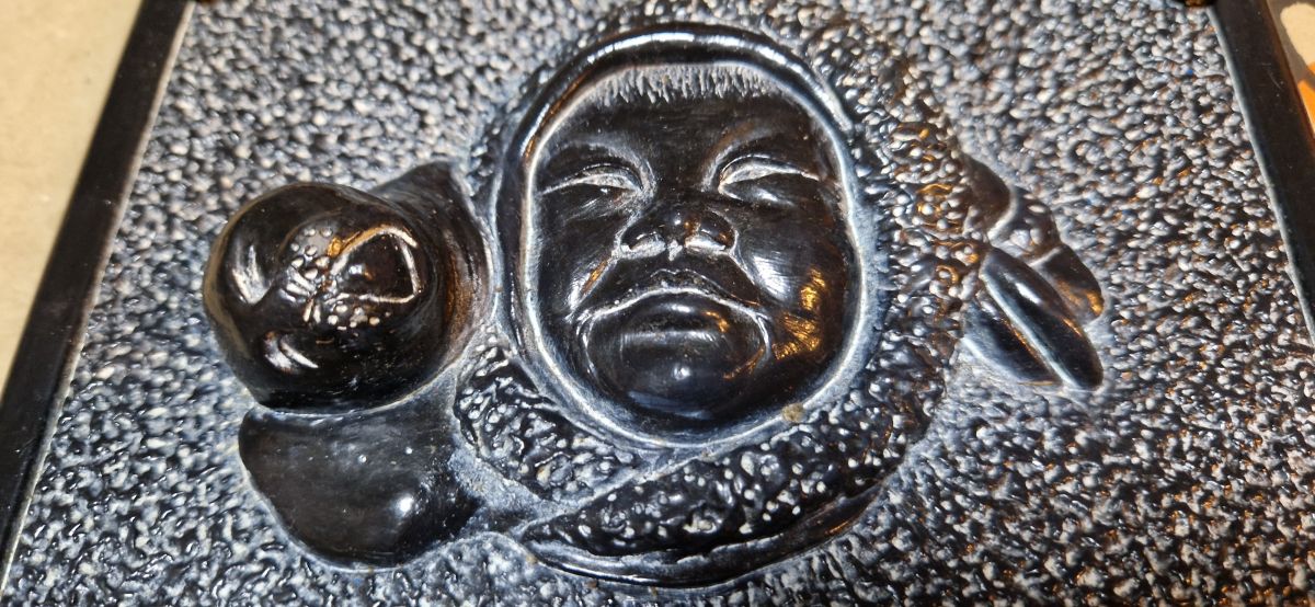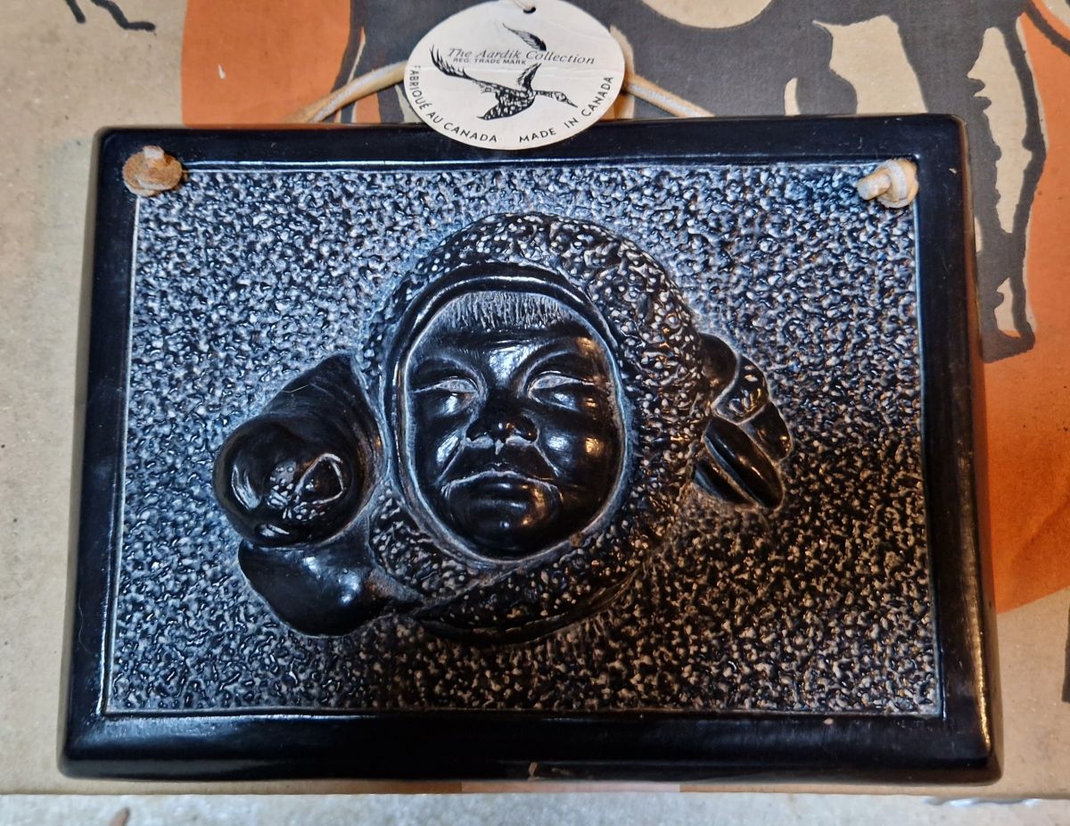 plaque murale vintage des années 1970 de la collection Aardik représentant figure de la vie sauvage esquimau par GIULIO Fabriqué au Canada
