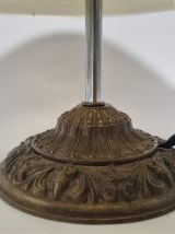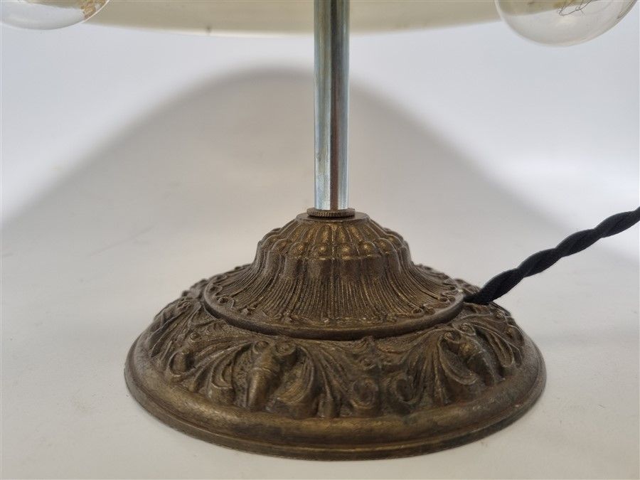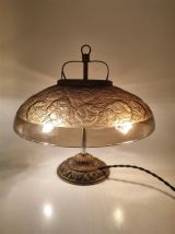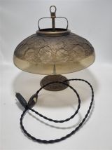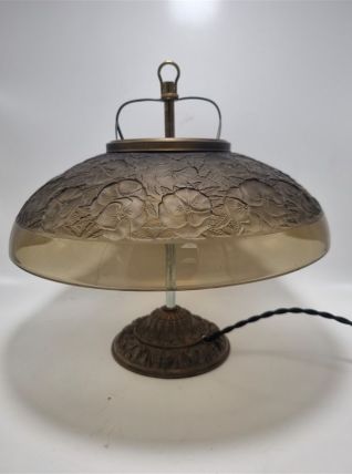 Lampe art déco en verre fumé avec un décor floral creusé.