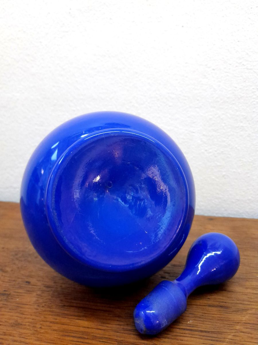 Carafe vintage en opaline bleu cobalt
