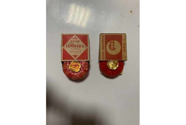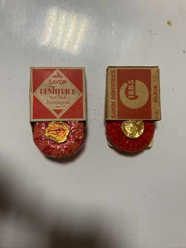 Je propose un lot de 2 boîtes " Savon Dentifrice - Gibbs n° 65 " complet et en boîte d'origine , bon modèle avec marquages dorés sur l'étiquette.