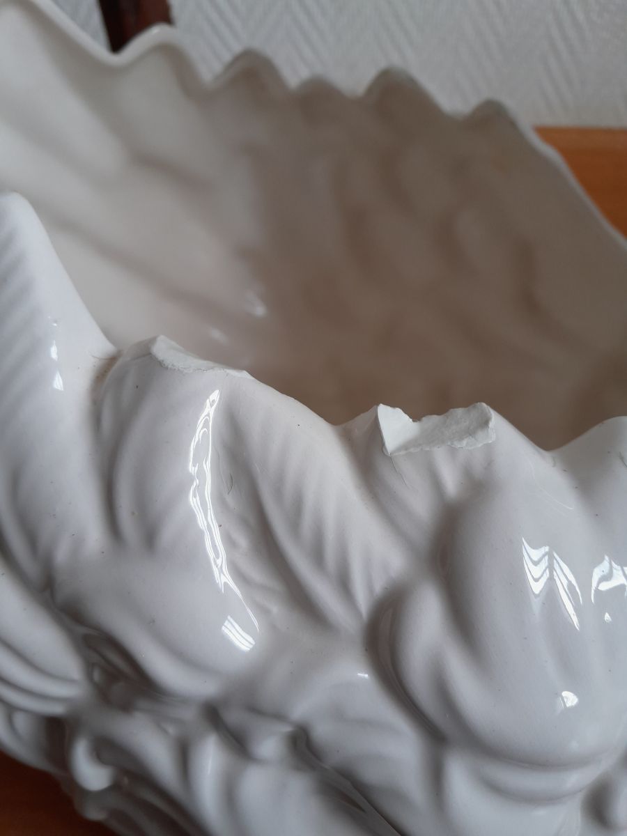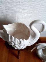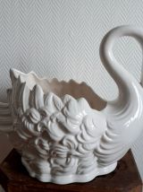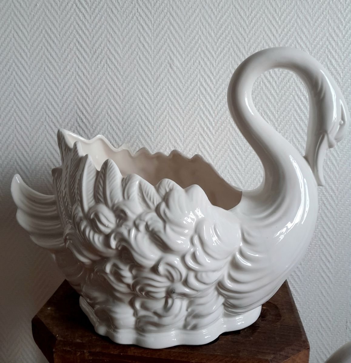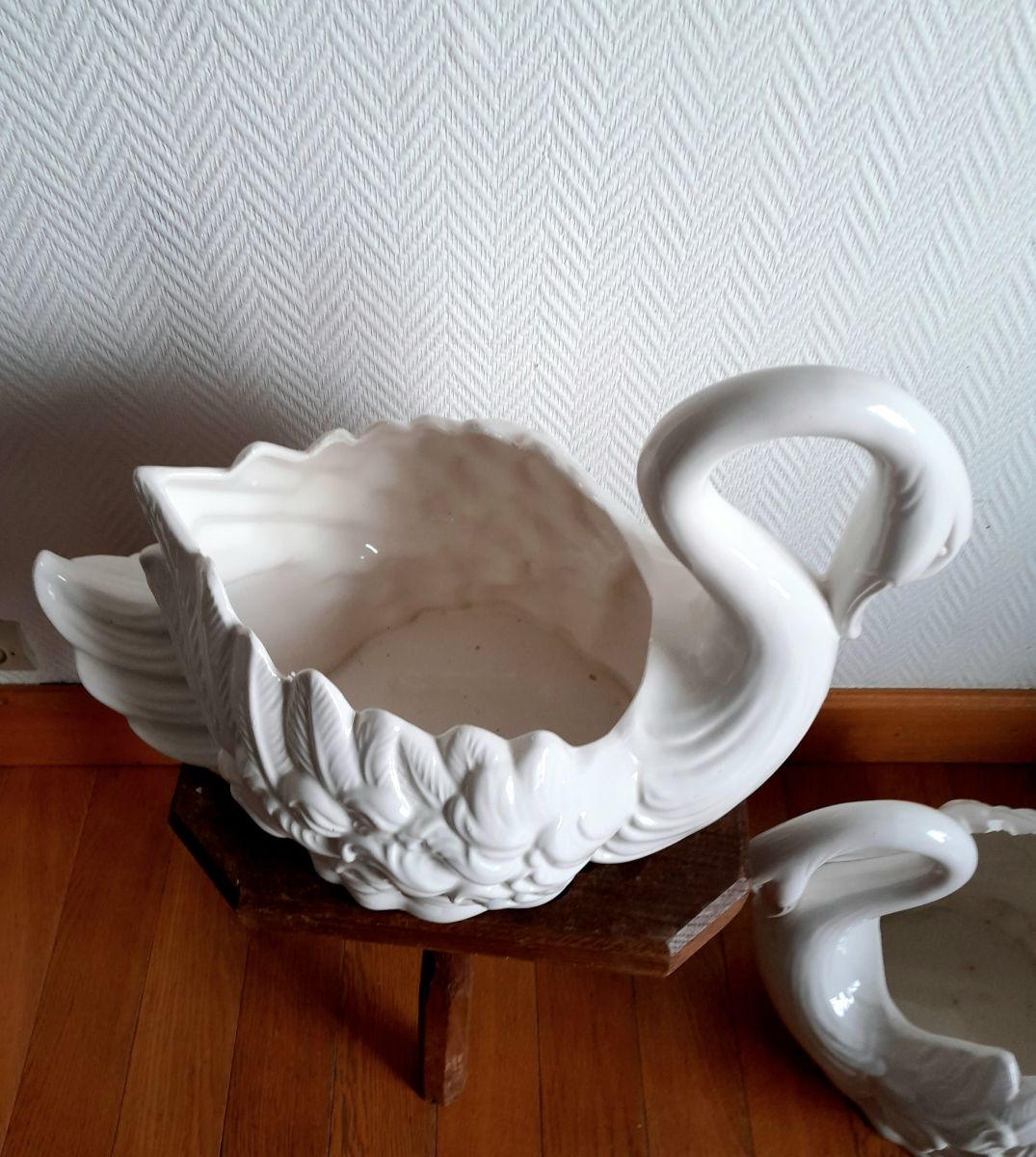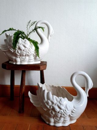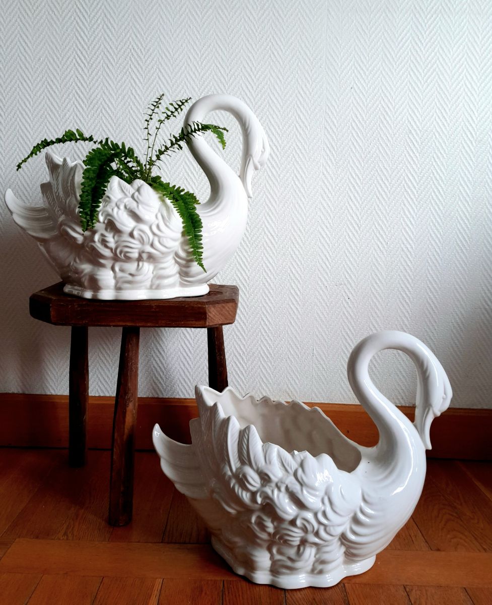 Paire de cache pots vintage vers 1970 en céramique blanche formant des cygnes. Superbes pièces vintage.